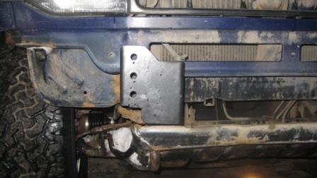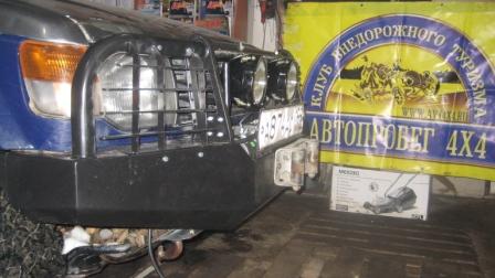 Кронштейны сбоку: Кронштейны спереди: Бампер изнутри: После установки, вид сбоку: Уже с 9000 лебедкой, но без рамки № знака: Вид сверху: Потом мы поставили "губки" и танковый ксенон: Спереди это выглядит так: Сверху так: А потом мы на него (бампер) встали: А вот здесь выложено видео, как мы ставили и снимали лебедки: http://video.mail.ru/mail/r01237/4/14.html