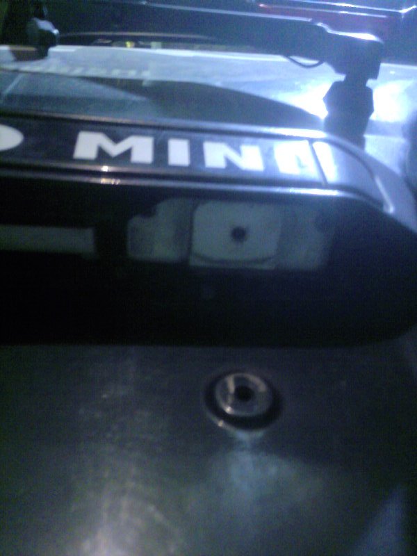 Достался мне Миник с телеком японческим. А так как он не воспроизводит цвет и звук нашего телевещания, то решил к нему камеру подцепить. Купил камеру дешовую без корпуса, сам сделал из пластика корпус. Поставил в место штатного освещения номерного знака. Сделал что её с наружи не заметно, но сделал максимальный угол наклона. Но она показывает только то что под бампером, и толькл сторону до запаски.