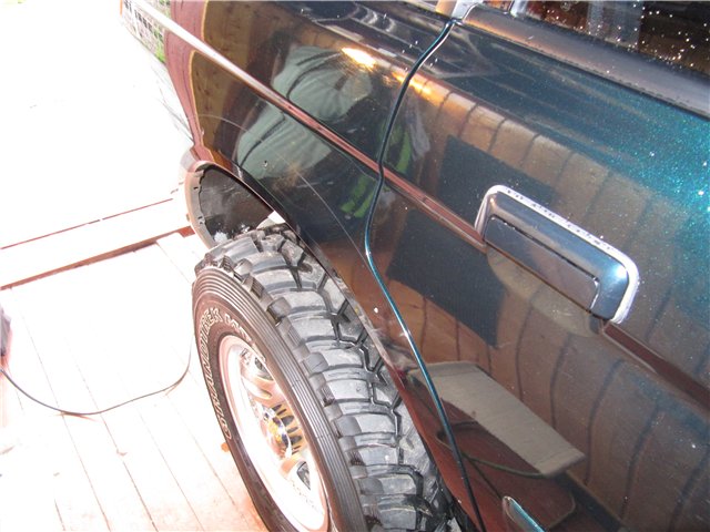 Внизу, на стыке с брызговиком, сколота вся краска и по середине расширителя царапина до пластика.