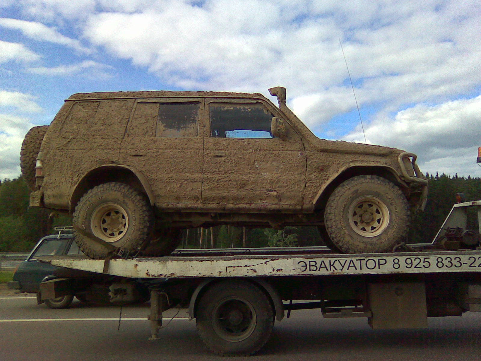 Отдельное спасибо, коротышу с наклейкой КомАпа на верхней перекладине кенгурятника (других отличительных знаков под грязью не разглядел), за то что не оставили мучаться. Мне бы там на пару часов джеком махать...