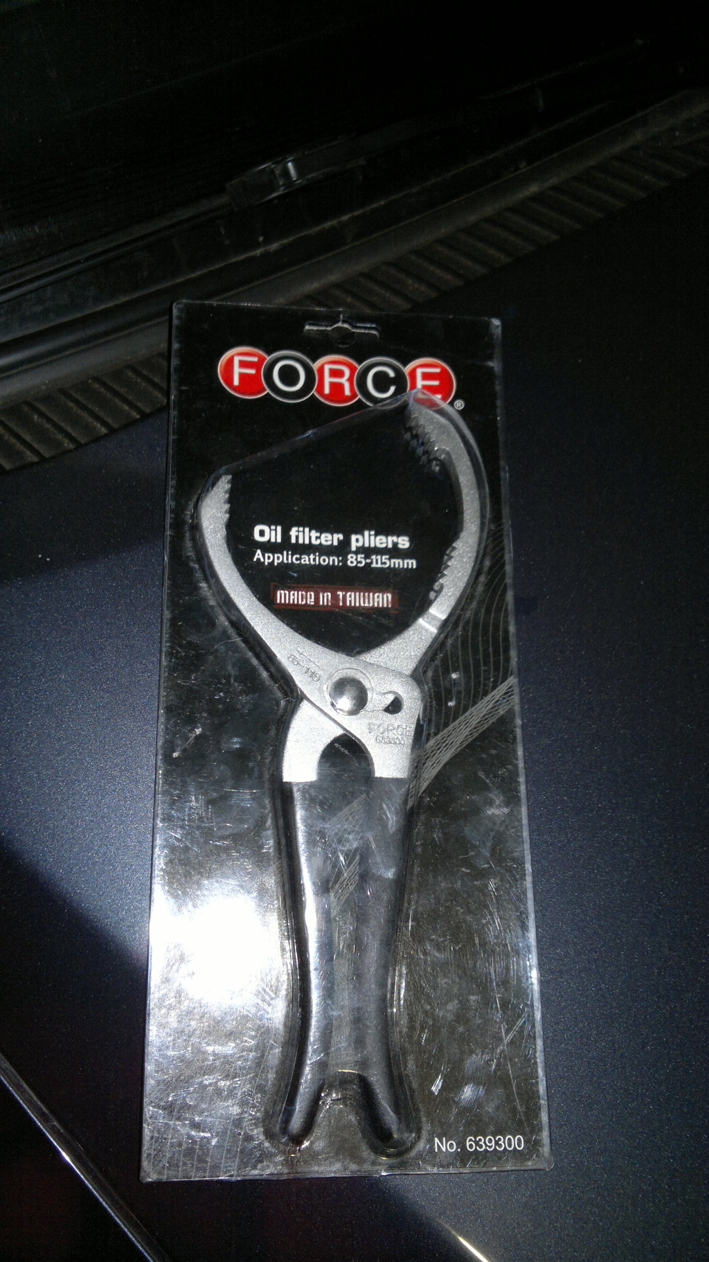 Берем ключ вот так Заводим его под фильтр как можно ближе к перегородке моторного отсека. Получаем свободный ход ключа пару сэмов,этого достаточно,чтобы сильно сжать рукоятки и сдернуть фильтр с прикипевшего места. Затем откручиваем фильтр рукой.