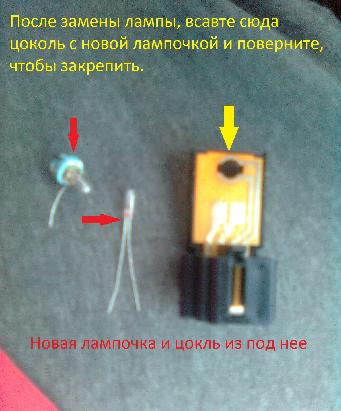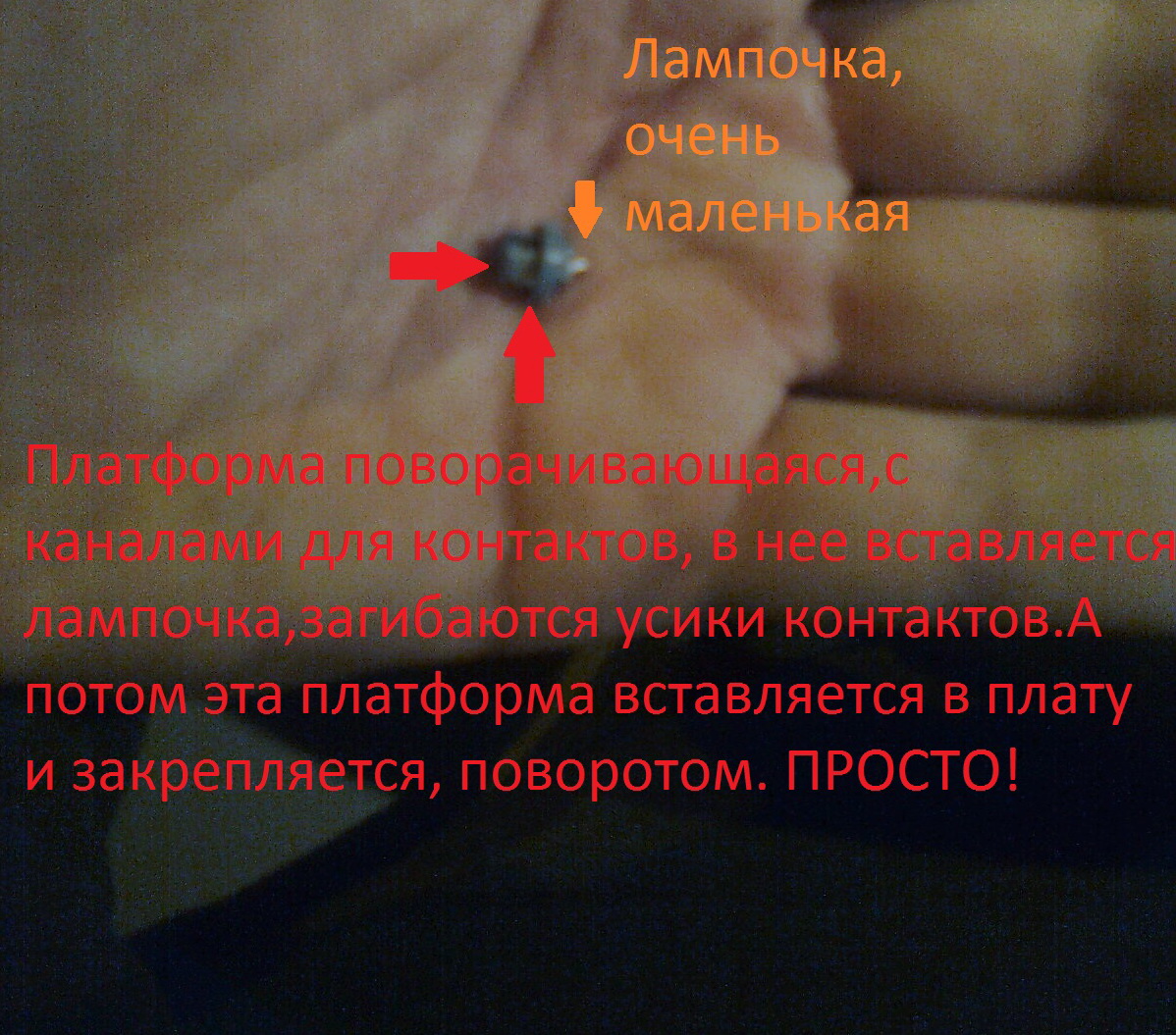 12.Вынимаем старую лампочку, вставляем новую и загибаем контактные усы,как на старой, излишки откусываем (НЕ ЗУБАМИ