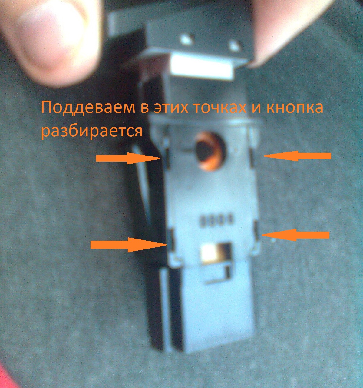 9.Разбираем кнопку, поддеваем по бокам и она разбирается, легко.