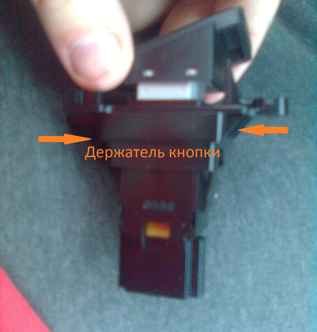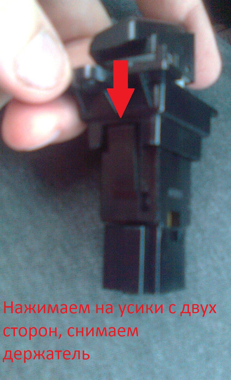 8.Отсоединяем, держатель от кнопки. Просто нажимаем по бокам на усы, и рас соединяем держатель от кнопки.