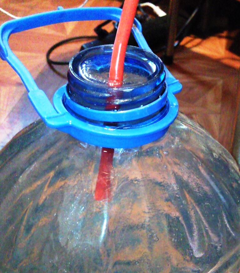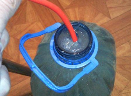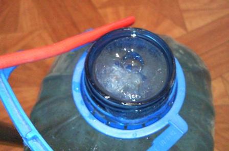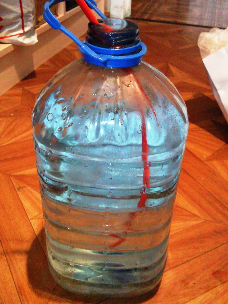 Итак вчера получил обогреватель. Правда я попросил сделать его мощнее, чем для кроликов. Замеры показывают, что мощность при 12 вольтах около 100 Вт. Неплохо. На ночь оставил на улице 5-ти литровую бутыль с водой. Сейчас занес её и буду в режиме реально времени испытывать нагреватель. Итак подключаем к 12 вольтам и вставляем в горловину бутыли упирая в лед. Через 2 минуты получается вполне ощутимая проталина.