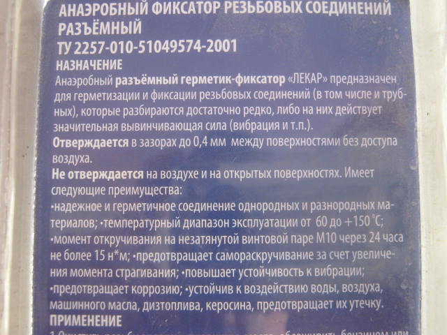 а все движущиеся части принято сажать на резьбовой герметик,маховик например тоже...