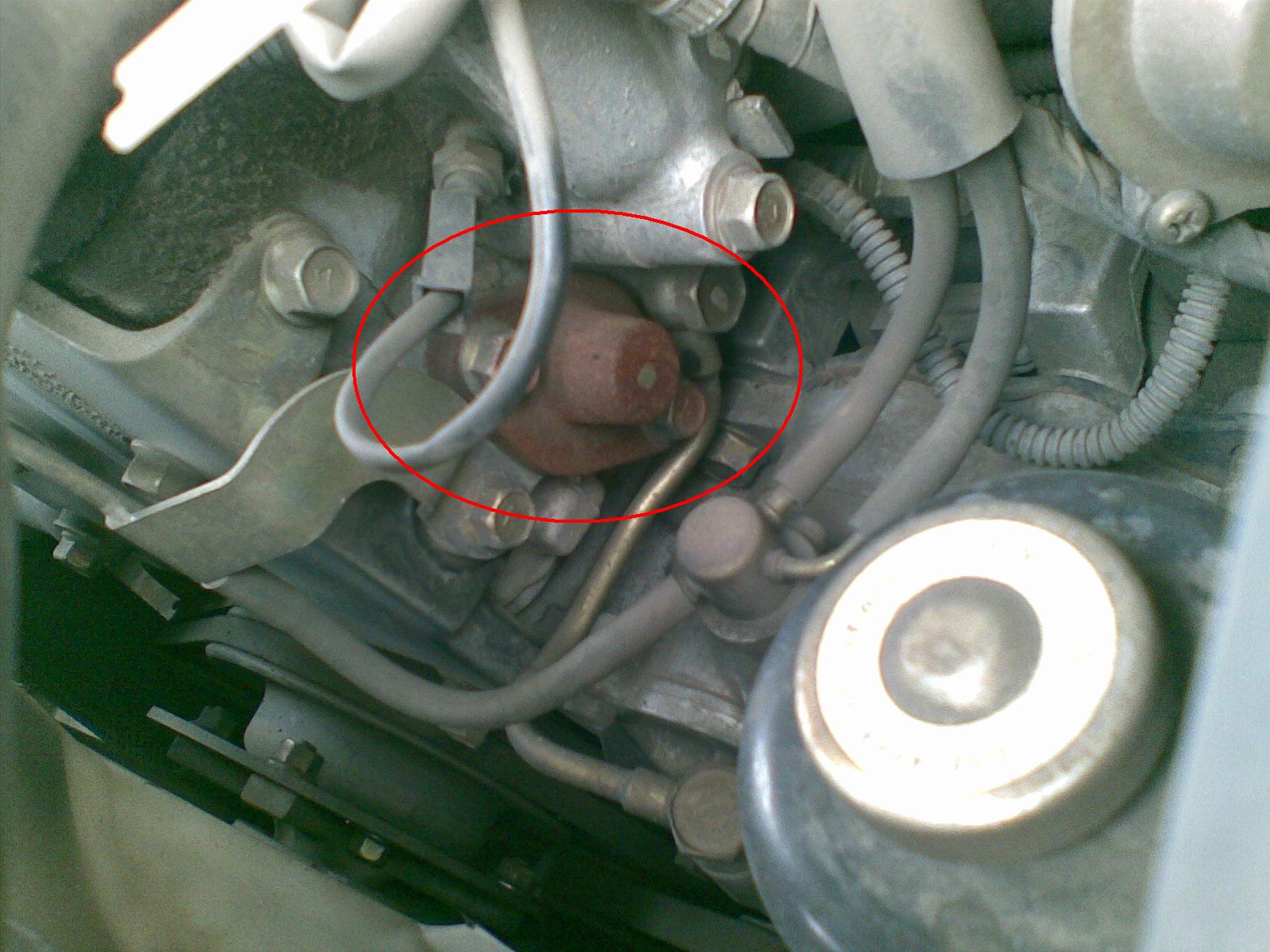 Еще немного конкретики. Вот так у меня выглядит натяжитель. При чем он так точно выглядел у меня и три года назад - почему и обратил на него внимание; на фоне аккуратного подкапотного пространства ржавое пятно выделяется