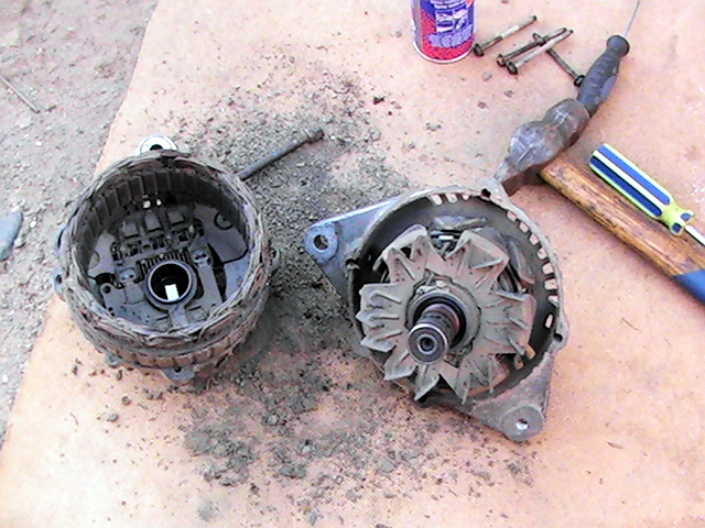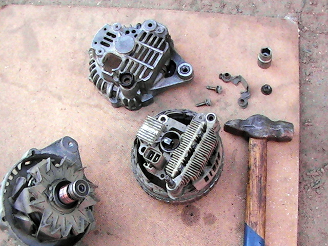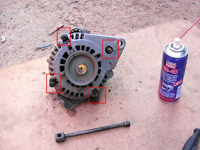7. Откручиваем 4 болта на корпусе генератора и аккуратно постукивая молотком\кувалдой половинем его.)))