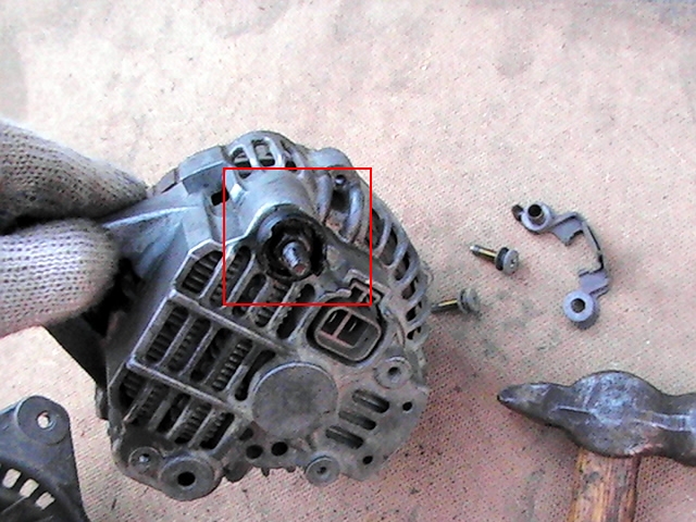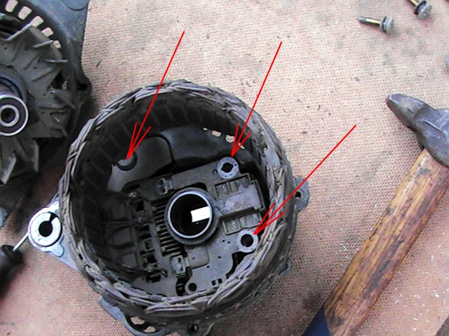 Из обнаруженных неприятностей... Помирающий подшипник и пригоревший контакт под защитным колпачком упомянутом выше. Грязи внутри гены было много. Щетки оказались вполне еще годными, а вот контактную часть на роторе пришлось зачистить нулевкой, для лучшего контакта.
