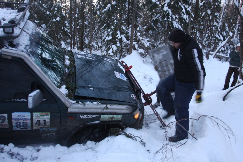 Первые километры до болота дались совсем просто. А вот болото, прошел только стандарт, наверно опыт и вес авто позволил ему пройти его не лебедясь. Подготовленные экипажи применяли все что было в их арсенале, hi-jack, сенд-треки и конечно русские слова, ну как же без них. Далее дорого позволила добраться до заветной деревни без особых приключений. Но так как было темно, не все смогли посмотреть на колокольню.