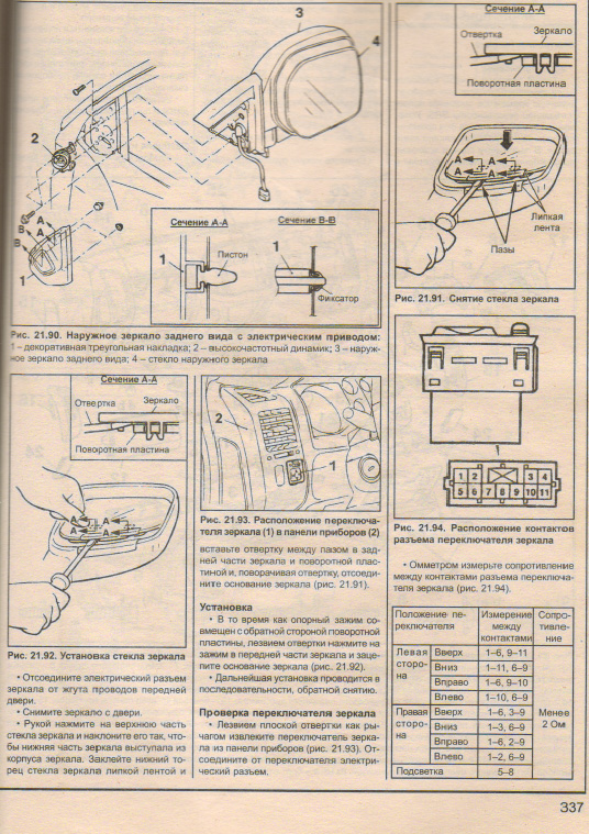 Покопался минут 20 в своём раненом зеркале. И отвёрткой пытался отогнуть защёлки, и пытался посильнее тянуть на себя, пытался сдвинуть вверх отгибая другие защёлки. Но зеркало мёртво сидит на месте, даже попыток сдвинуться с места нет. И провода видел, которые видимо надо будет отцеплять только после снятия зеркала.