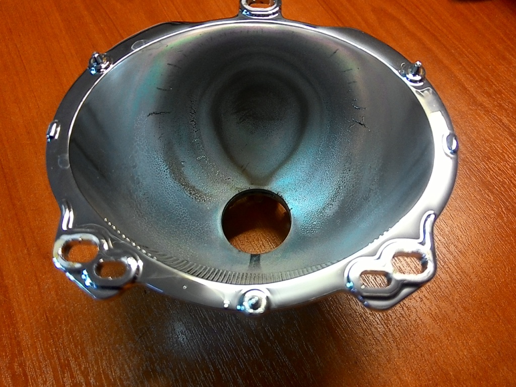 пошарил в интернете, нашел фирму которая занимается хромированием, отвез им отражатель, через 4 дня забрал. Цена вопроса 2 т рублей. Можно найти дешевле, просто мне в эту фирму удобнее было проехать. Обещали что не облезет, мол не ты первый и ни кто еще не жаловался. Вот что получилось