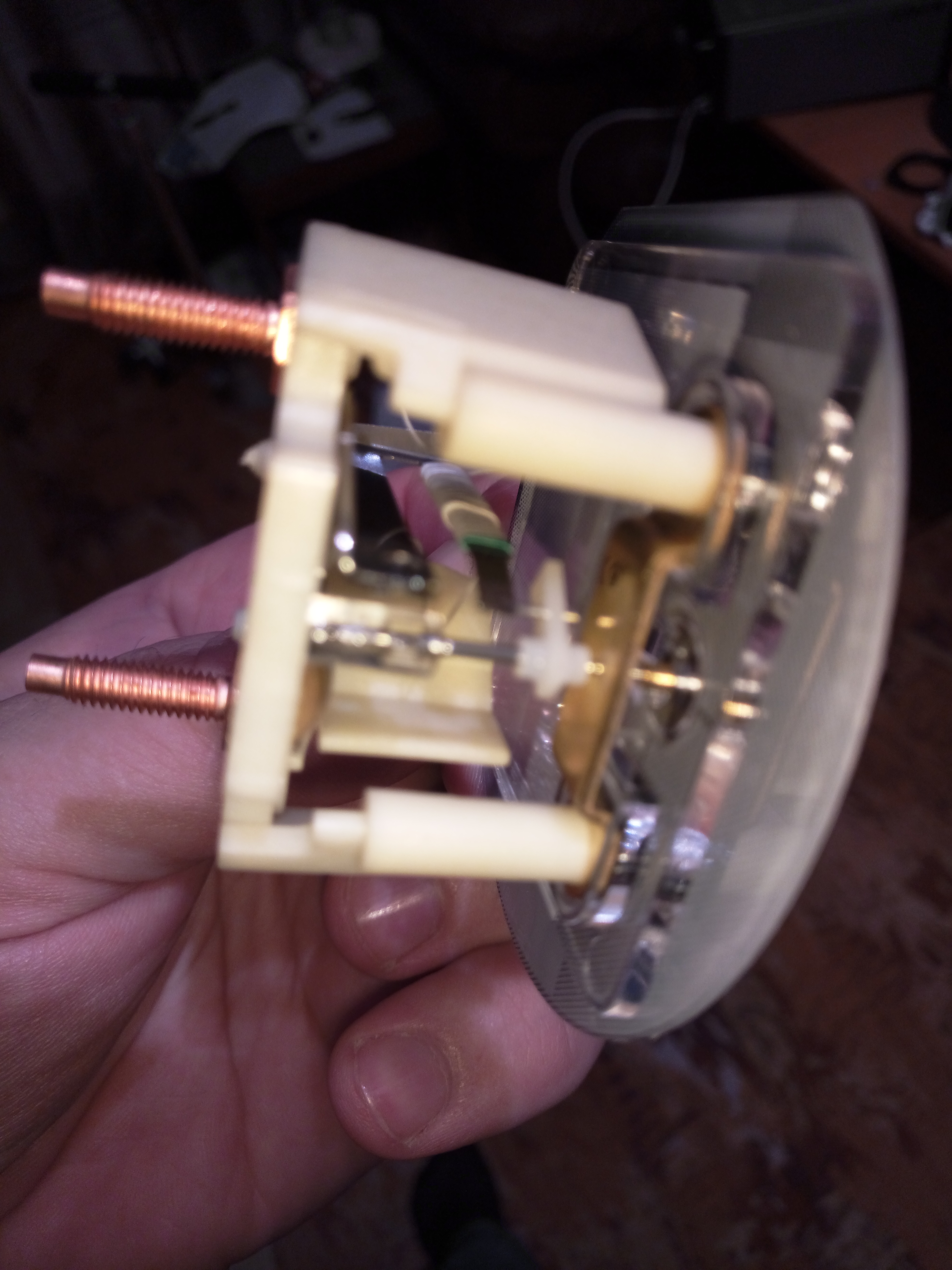 зафиксировал регулировочную пластину на клей как и было, потом проверил все показания совпали с рабочим прибором.