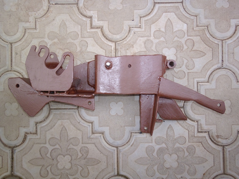 Пару-тройку дней машина стояла в гараже с раскиданной "мордой"-без радиатора,насоса гура,гены,шкива помпы и пропеллера....Мысли о преносе всё же остались))),но нужен был другой подход,более основательный,чтоб можно было сделать-поставить и забыть!!!И вот несколько вечеров(после работы) были отданы разработке и изготовлению нового кронштейна для геныча.Сначало основные детали вырезал из картона опытным путём,примеряя,переделывая и подгоняя так как надо.Особо не спешил,поэтому делал не торопясь по немногу каждый вечер.На фотографиях видно,что получилось.Основной упор сделан на опору родного кронштейна генератора.Размеров не снимал,так как делал на руках можно сказать.Кронштейн гура приварен к основному.