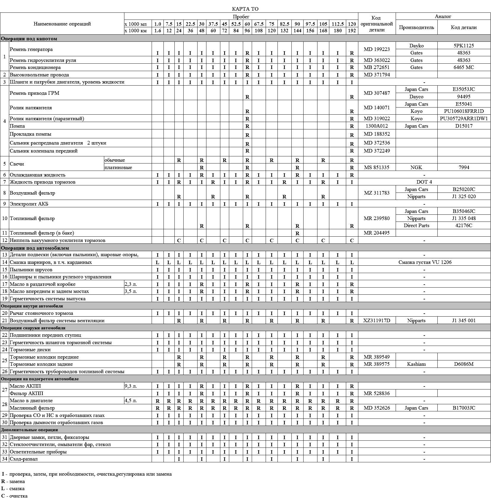 Re: Карта ТО Montero Sport (с кодом оригинальных деталей)