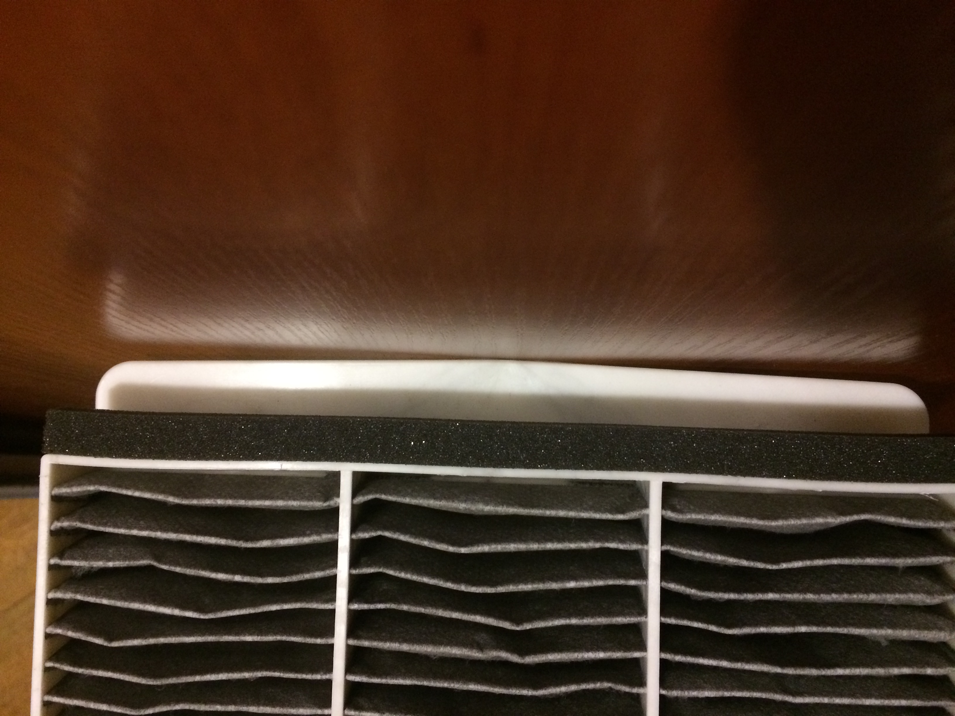 Так надо вытащить фильтр и он будет виден, как раз та сторона, что на вашей фотке все в г...