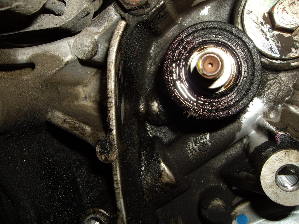Картина "маслом" в прямом и переносном смысле: Ремень балансиров и ГРМ в хорошем состоянии. Единственное, почему ремни РЫЖИЕ???: Более того, ремень балансиров особо не ослаблен: Сальник "колена" не сопливит: Причина - "готов" сальник нижнего балансира: Сняли шкивы, вынули сальники и ОПА!!!