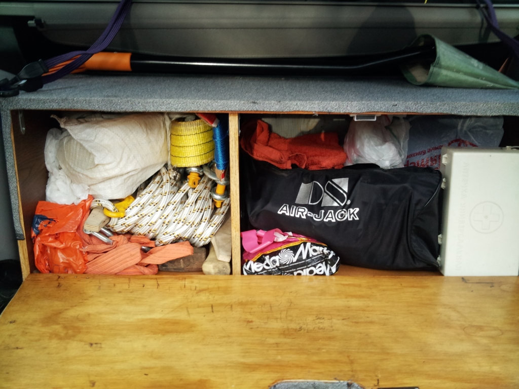 Не всегда нужно брать с собой реечный домкрат, компрессор, провода прикуривателя и т.д. (мне ничего из этого ни разу не пригодилось). Однако не все привозят с собой элементарно стулья на природу (это нормально, т.к. не все вообще имеют туристское/пикниковое и иное снаряжение), но присесть у костра либо речки рано или поздно хотят все. Это желание можно удовлетворить, если в багажнике всё разложено по ящикам, которые можно вытащить и использовать как скамейку.