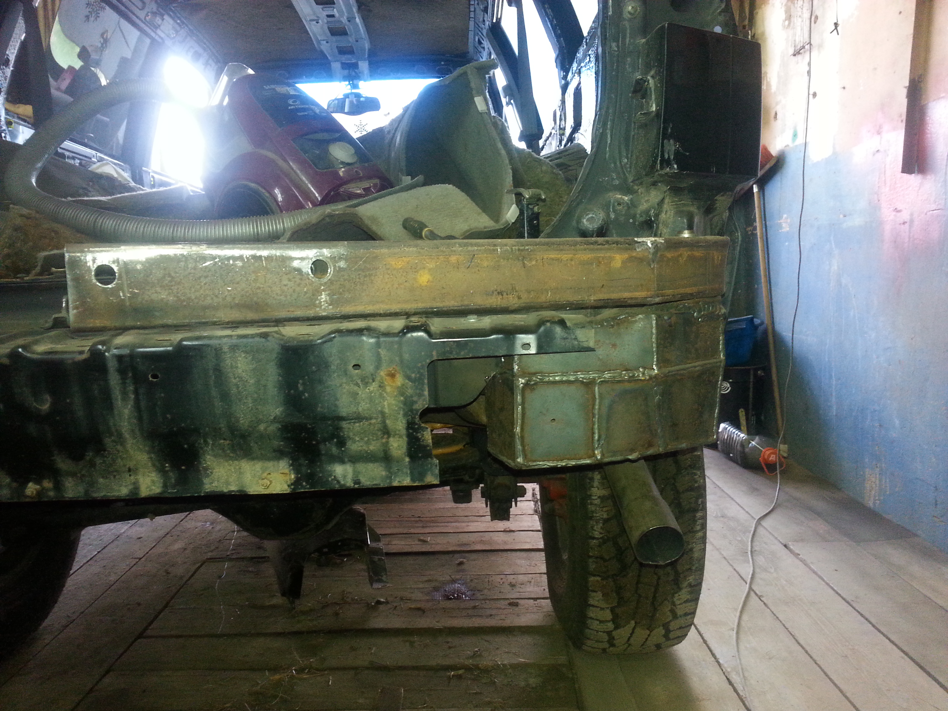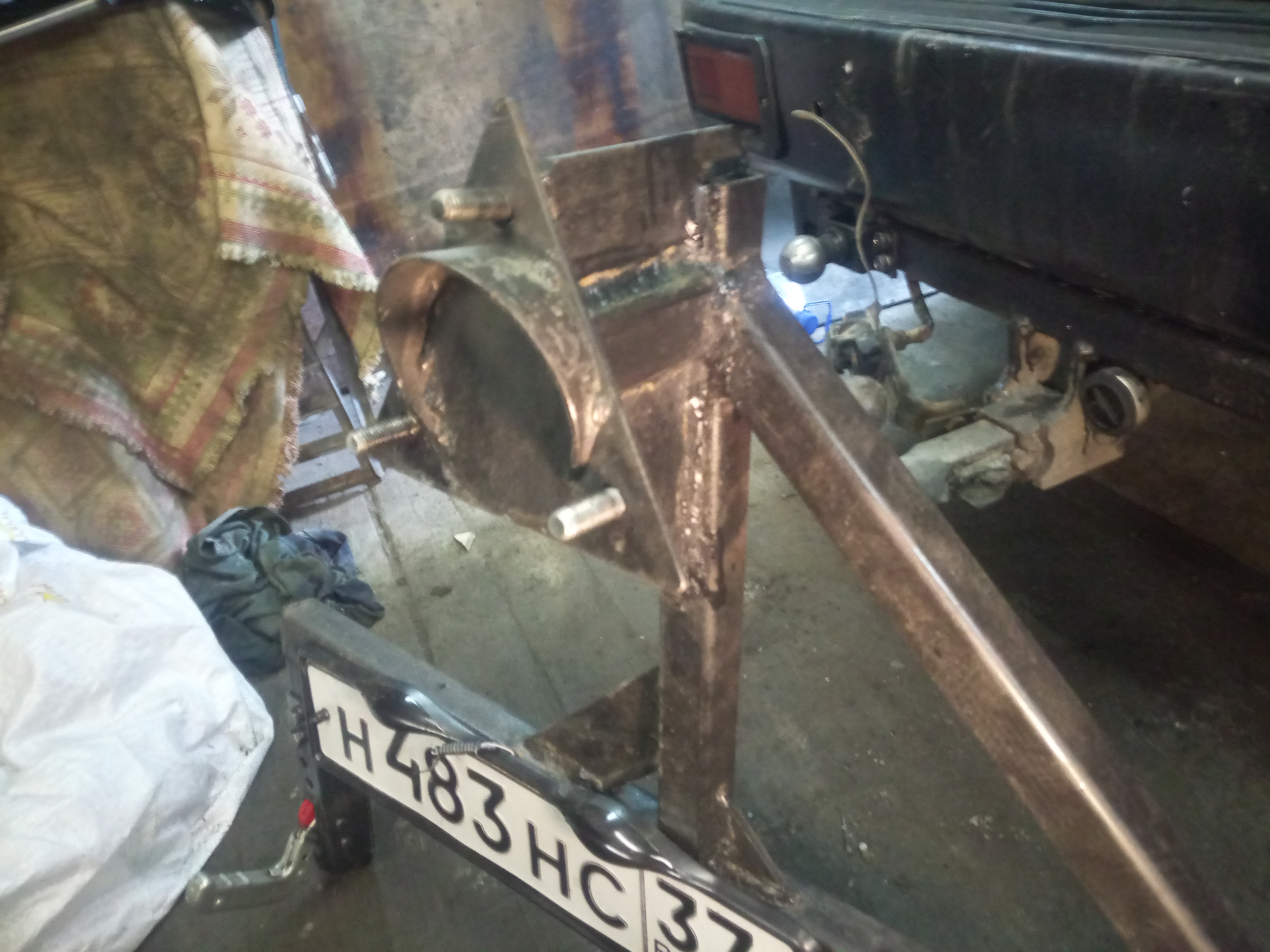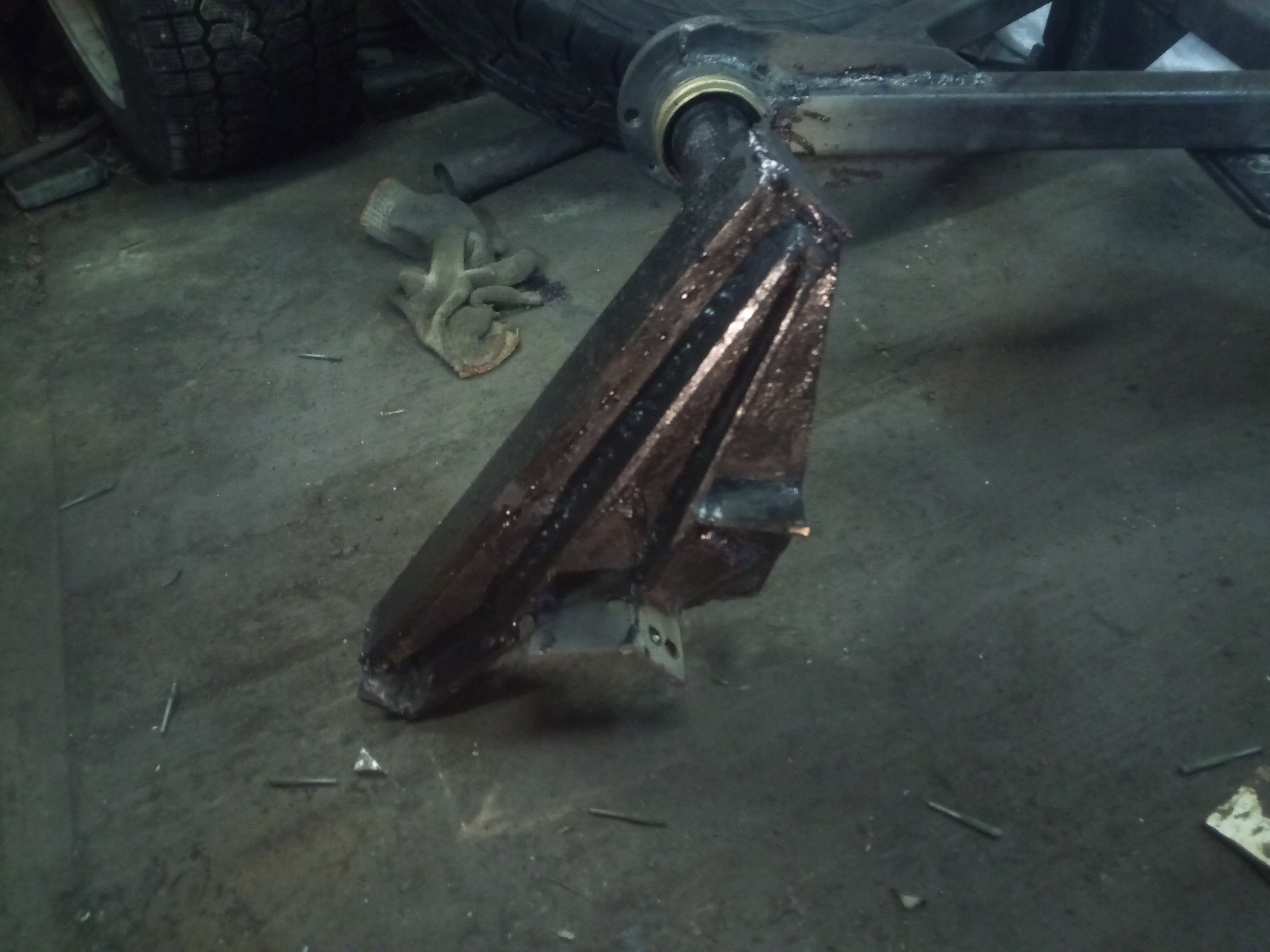 Немного повело при сварке(сварщик из меня не особо) ,но в целом очень даже ничего, ща ещё хочу амортизатор от двери багажника девятки или нивы приколхозить