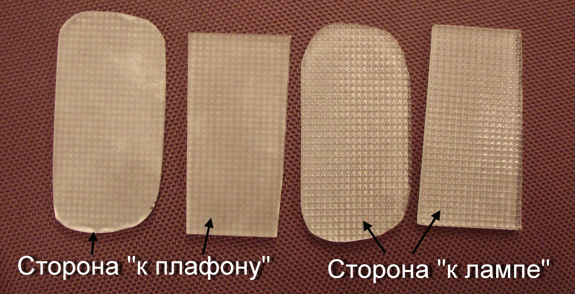 "Велосипед" изобретался строго по прикладной науке ::-D: - экспериментировал с ПЭТ-рассеивателями разной степени матовости, разным кол-вом. слоев, измерял температуру светодиодов при длительной работе (инфракрасным "пистолетом"), по разному крепил пластины в плафоне, и методом проб и ошибок получил то, что хотел-мягкий белый свет без бьющих в глаза сквозь плафоны диодов. :*THUMBS UP*: