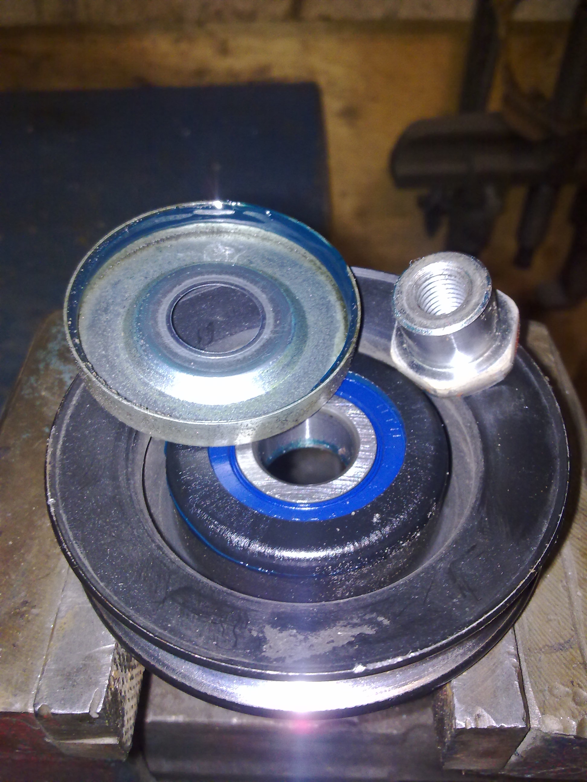 Наставляем новый пошипник и аккуратно/неспеша задавливаем в ролик