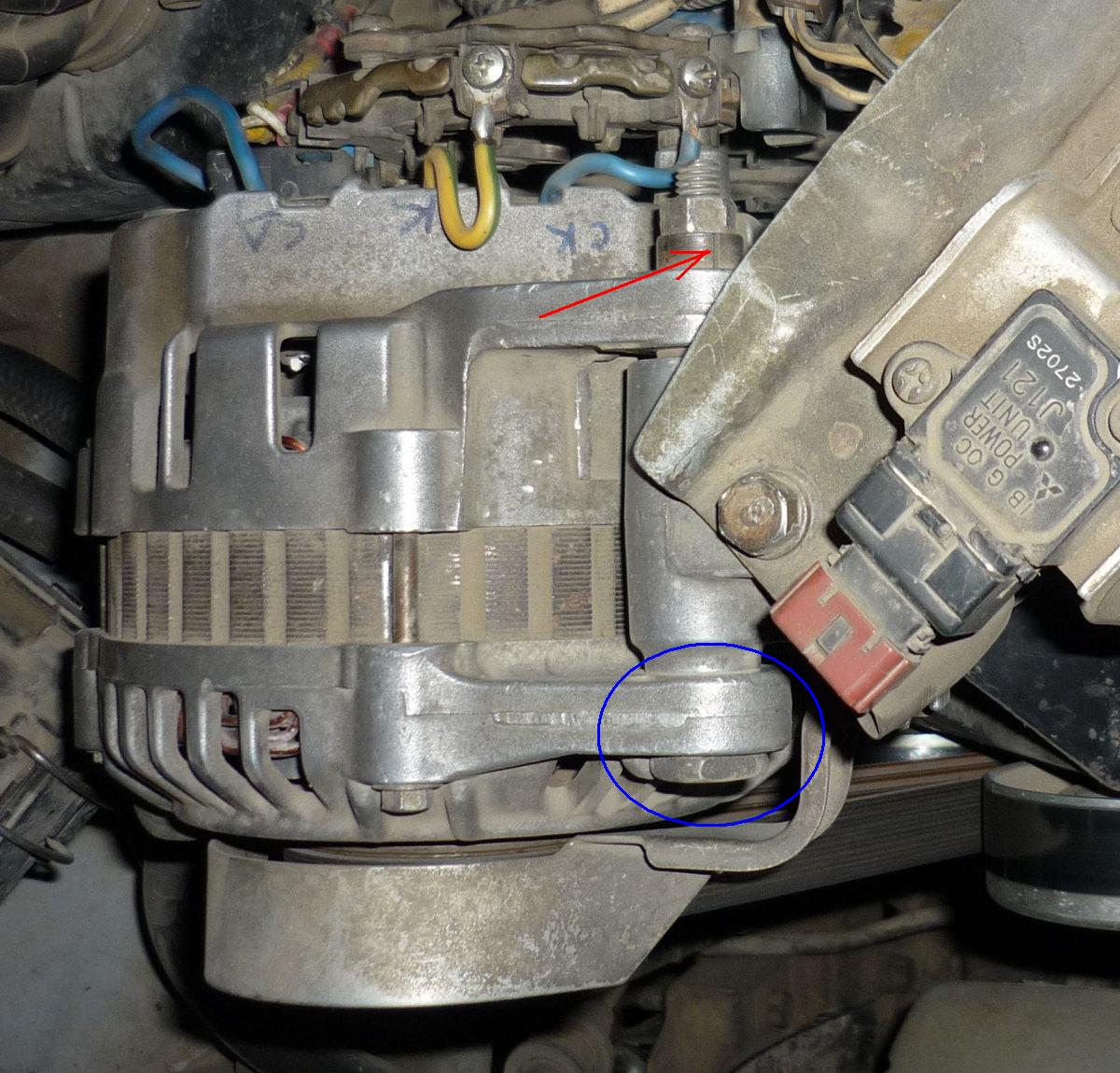 Красной стрелкой помечена втулка, которая стоит в ухе генератора с одной стороны.