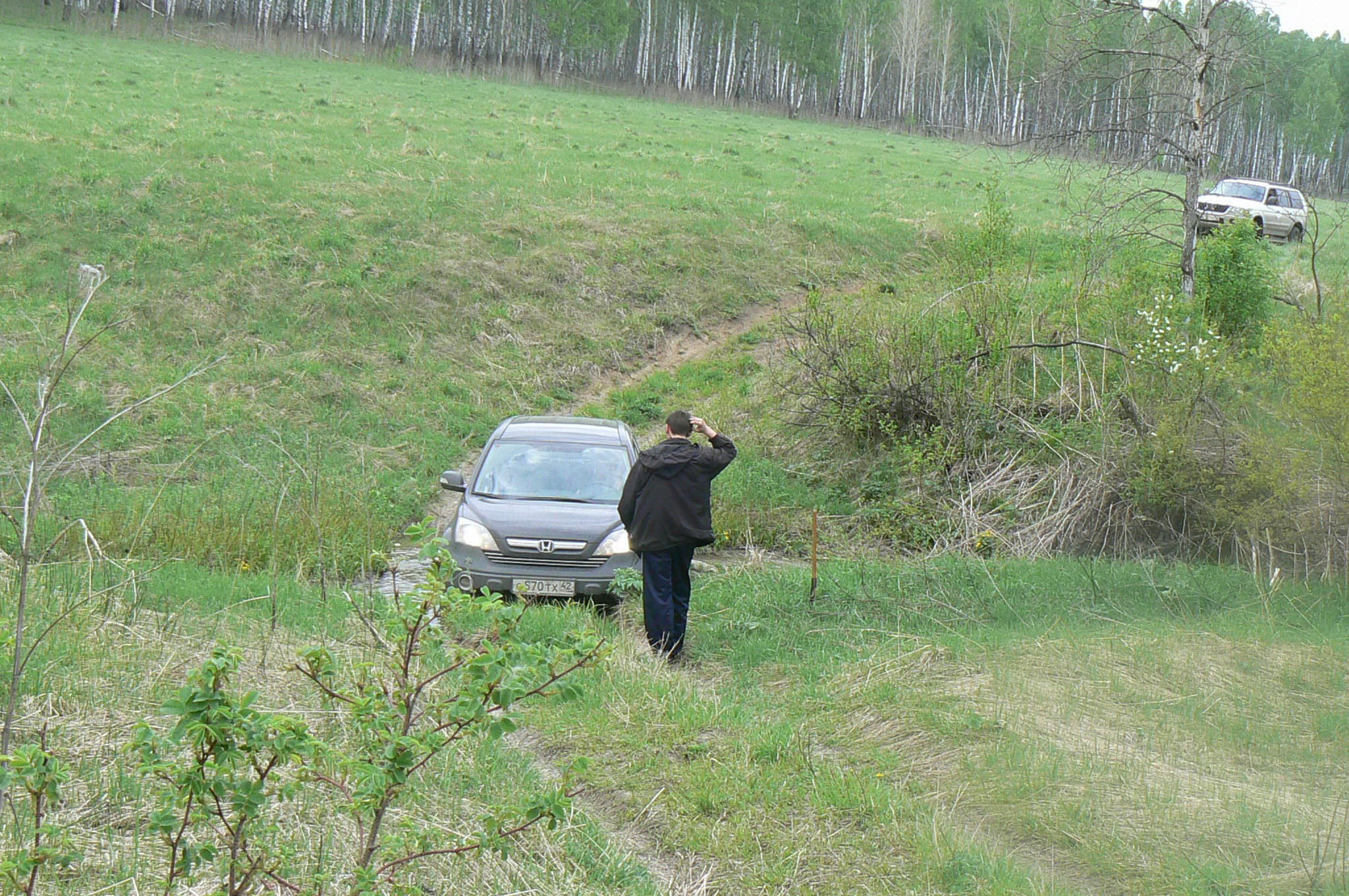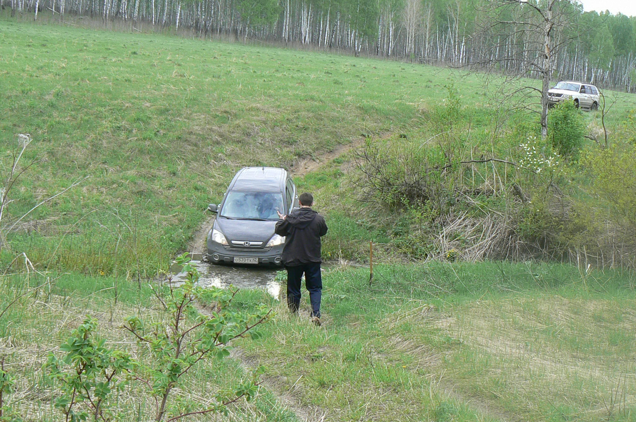 Брод серьезный! На дне топь. Вот пример, этого "крутого паркетника" пришлось вызволять. А стоит !!!!!!!!!!!!!!!!!!!!!!!!!! Марка однако! Спорт здесь даже не буксует!!!!!!!!!!!