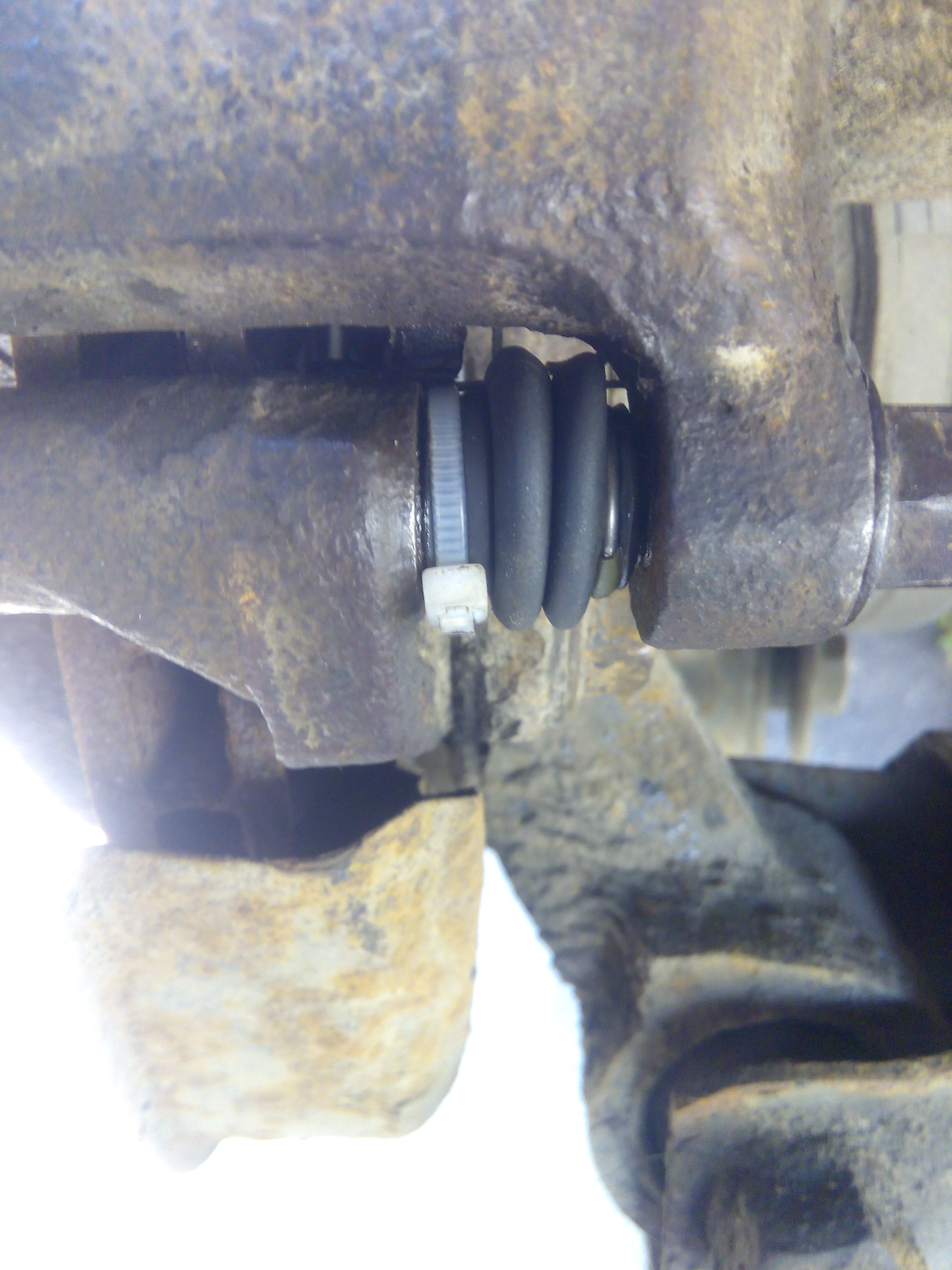 вот так выглядит на пыльнике (заднего суппорта) кольцо от пружины: а так на машине (тоже задние суппорта): передние не фоткал. там аналогично, только без пластикого хомута.