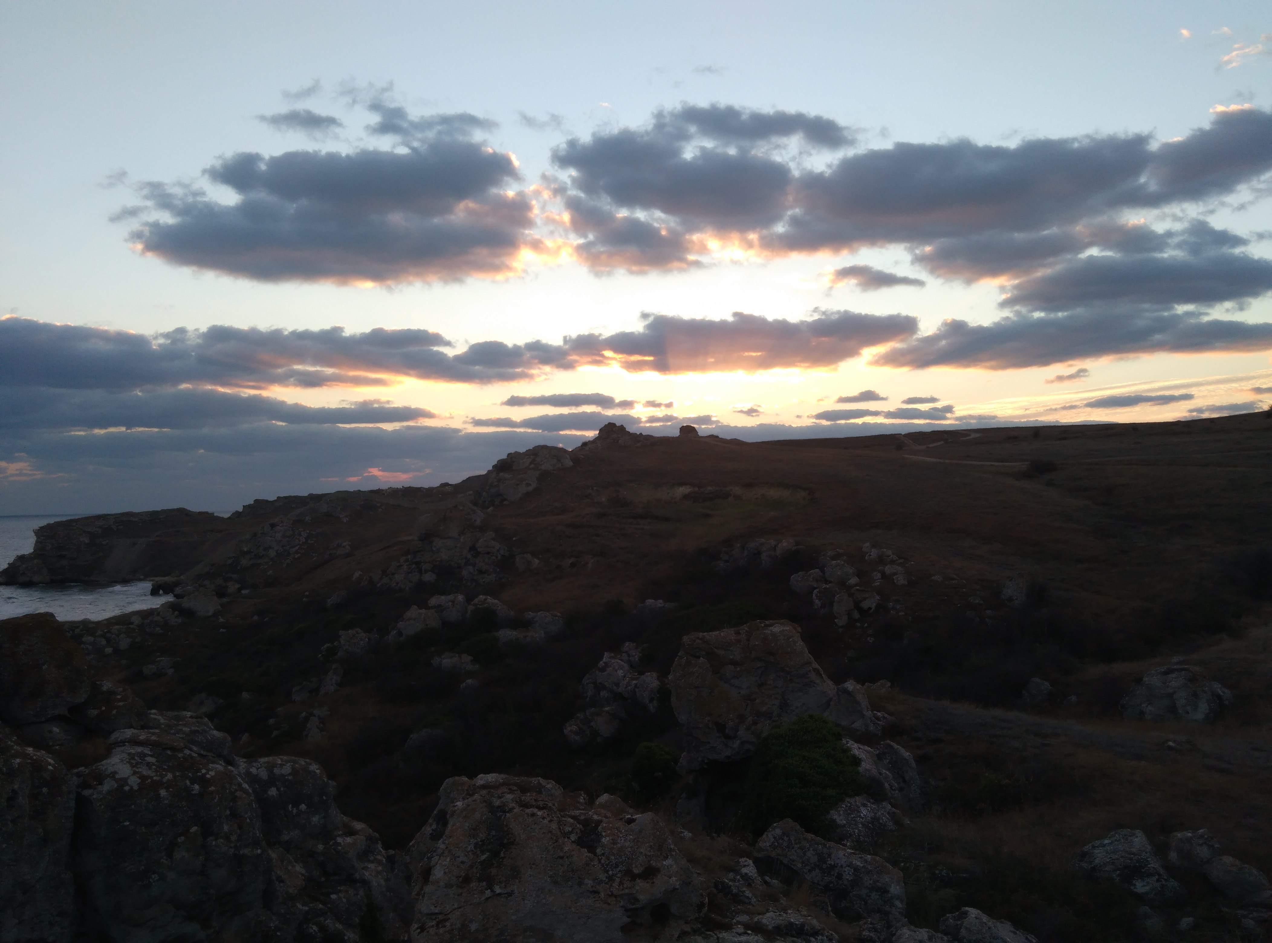 Как и планировали, с 15-го на 16-е переночевали в одной из Генеральских бухт. Встретили там рассвет в 6-15 утра и на паром. Нарушил 2 принципа: не ездить по выходным и всегда иметь в пути живой интернет. Не уследил за балансом, ночью отрубилась МТСовская карта с интернетом, поленился искать в пути терминал и в результате 1,5 часа на ж/д переезде в Тимашевске и 3 часа от Батайска до Аксая. Вроде на навигаторе хотится по короткому пути, но пробки стояли наглухо, надо было объехать. Аднака я ещё красиво под Ростовом выкрутился, когда в Аксае в мотеле ночевали, то ребята из соседнего номера сказали, что они 5 часов от Батайска до Аксая ехали. Тем не менее сегодня 17.09 вечером уже дома, после 1100км дневного пробега 3 стопаря первоклассной крымской виноградной чачи привели меня в чувство. И вот уже "...я вам пишу, чего же боле....". Кстати на Генеральских пляжах впервые. Честно скажу, впечатлило, но всё равно с Тарханкутом не сравнить, даже по чисто эстетически-видовому восприятию. Ну а уже про пляжи, скалы, чистоту моря и продолжительность сезона можно и вообще умолчать. Тем не менее, учитывая более короткиий на 360 км путь, для ленивых в июле августе очень даже хорошо. В целом по нынешнему сезону с погодой очень повезло. 29.08 в Черноморске прошёл хороший грозовой фронт с ливнем. Когда ехали 30.08, то вечером между Евпатером и Черноморским тоже приличный ливень с грозой захватили. 31.08 вода была 23-24 градуса в разных местах. Дальше вплоть до 16.09 почти всё время было солнце и я впервые вижу, чтобы в это время вода на западе, а не на ЮБК снова прогрелась аж выше 26 градусов. Правда "ловцам ветров" нынче не повезло, за пол месяца раза 3 местный южнный ветер на Дон Узлаве разгонялся к обеду метров до 8-10. Один раз в холостую 3 кайта над Дон Узлавом поднимали, но кататься так и не смогли, слабовато было. И 3 раза катались, ну максимум часа по 2-3, а к 15-16 ветер спадал и потом переключался на северный, ну максимум метра 3-4.