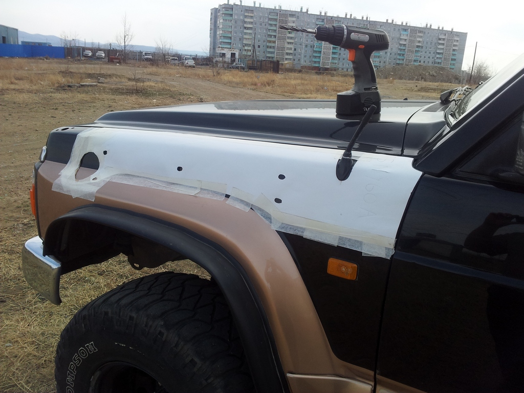 литанул сафаря еще на 2 дюйма, отрезал арки и поставил небольшой японский хромированный багажник.. щас дожди кончатся, нафотаю!