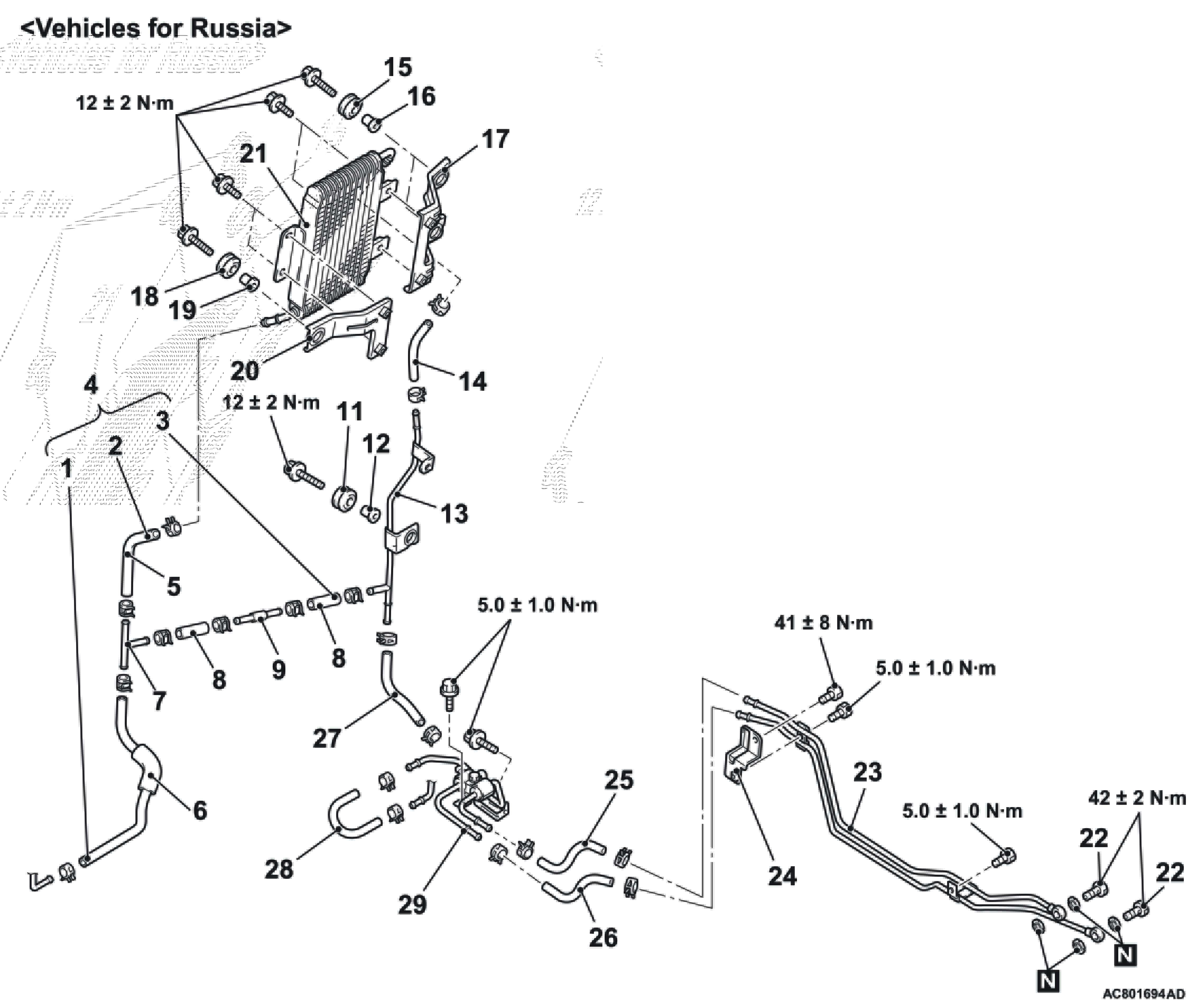 Для анализа используем Паджеро-4, где стоит практически наша коробка 5АТ, и стоит штатно радиатор АКПП, но для России есть перепуск жидкости, чтобы в условиях русской зимы не замерзала.