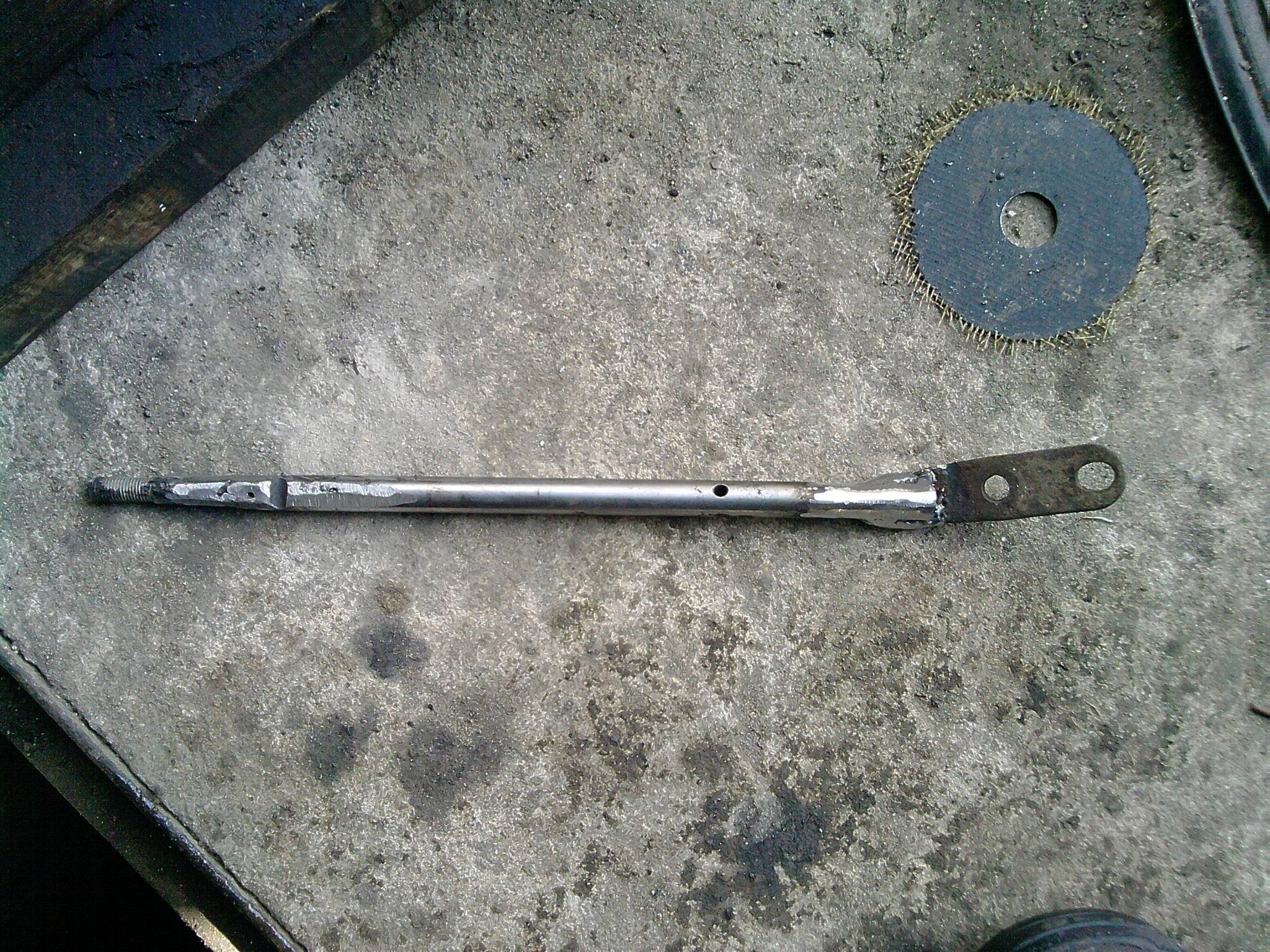 Вывел сегодня рычаг КОМа. Приварил к рычажку, к которому крепятся тросики, подходящий "прутик", замечательно подошел ползун раздатки