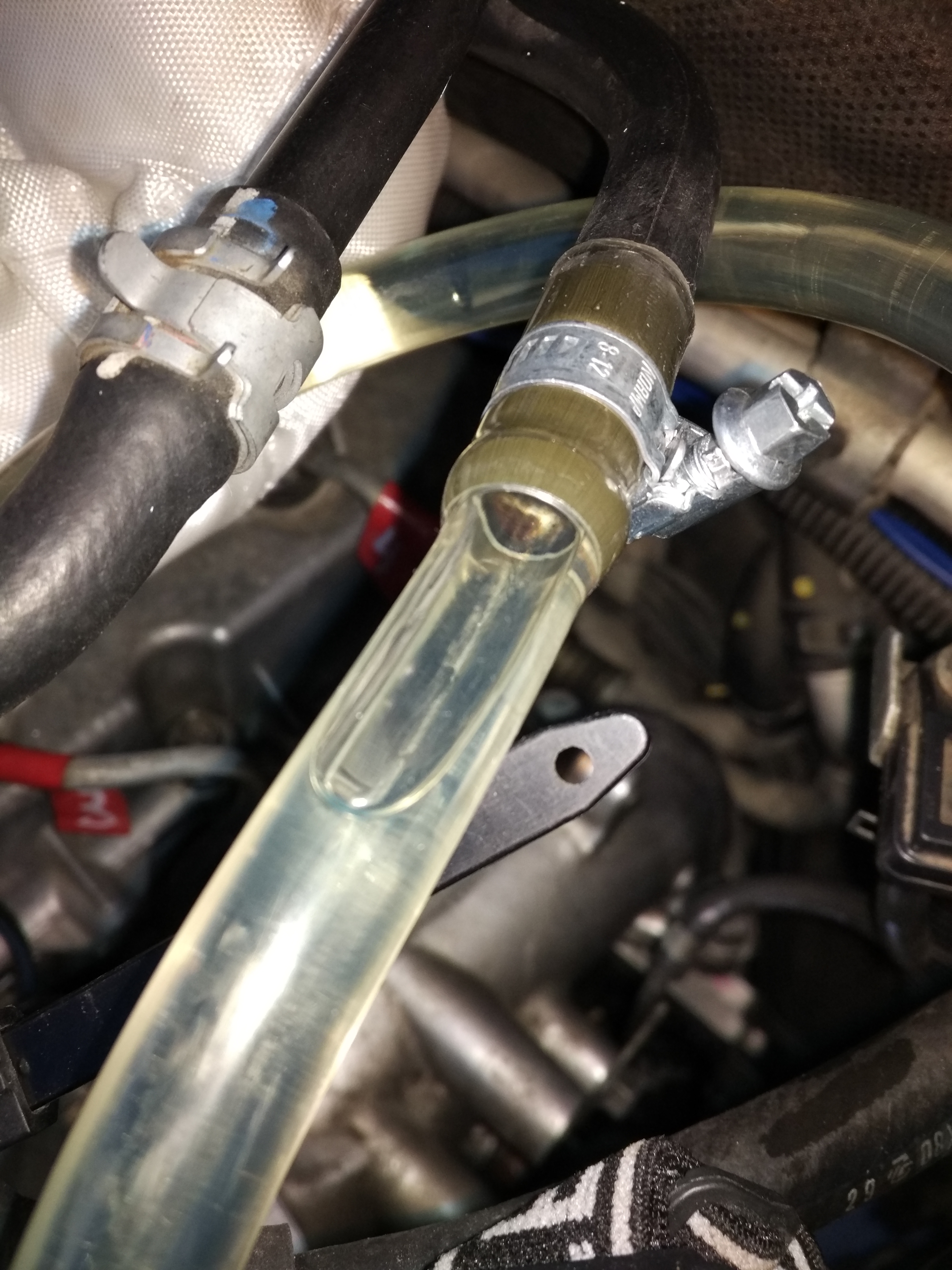 Уже много лет езжу с сепаратором, но шланги у меня не прозрачные, поэтому я не знаю есть у меня там воздух или нет!