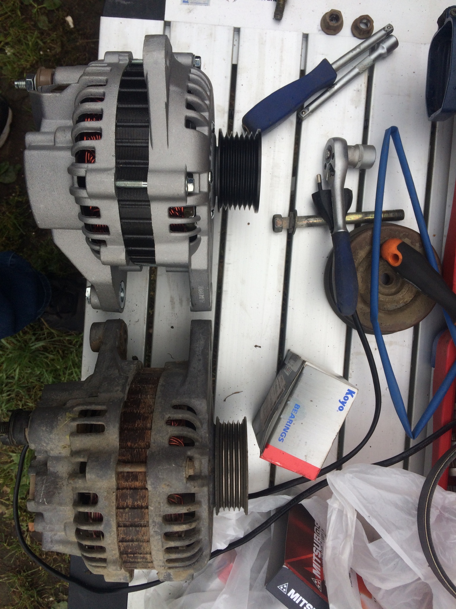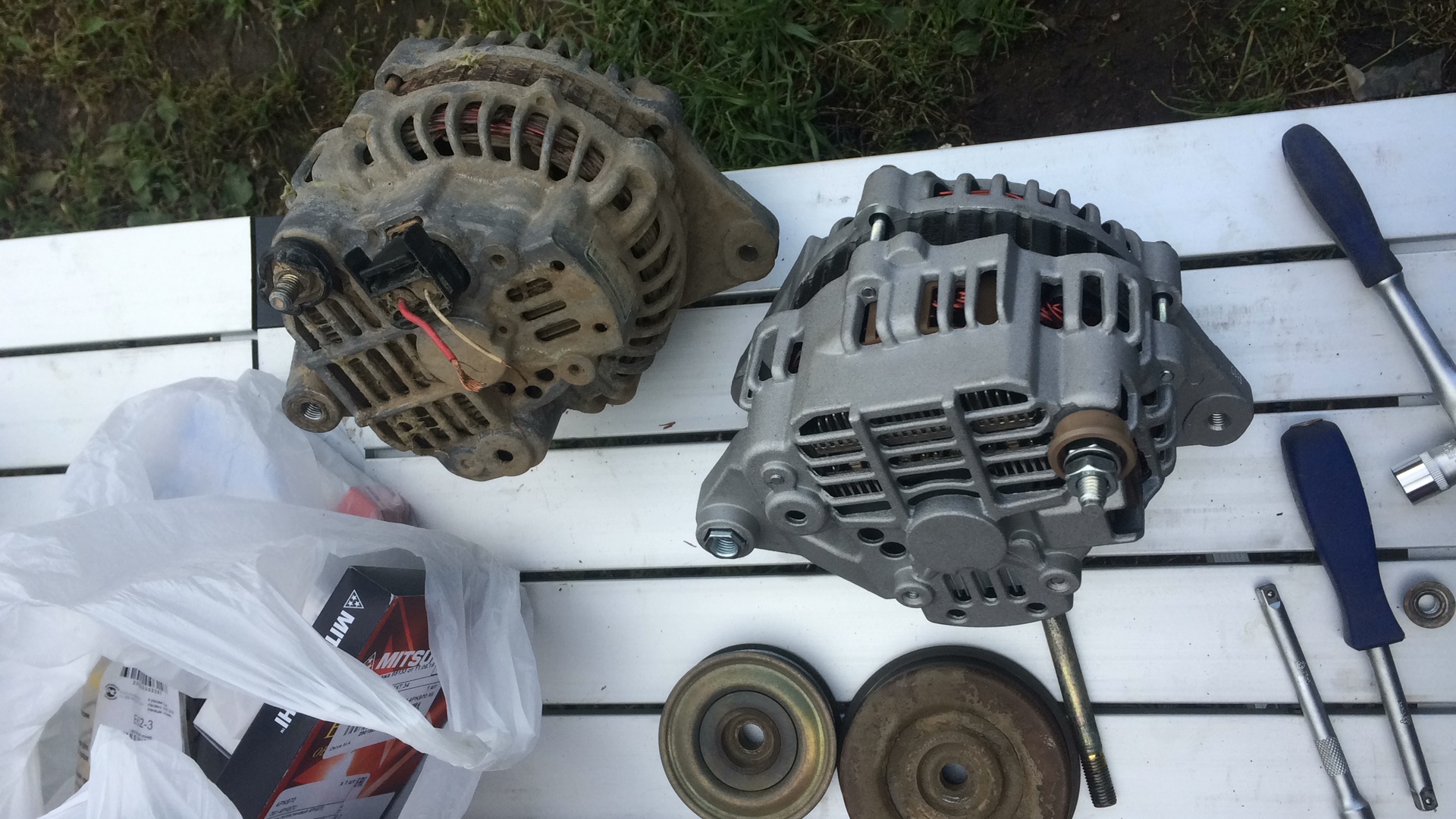 На этом генераторе шкив без разборки не перекинуть, т.к. нету внутреннего шетиграннки на валу (по крайней мере на фото я не вижу). А без него не открутить. Можно конечно умудриться сам шкив зажать в тиски, но он, падла, нежный...