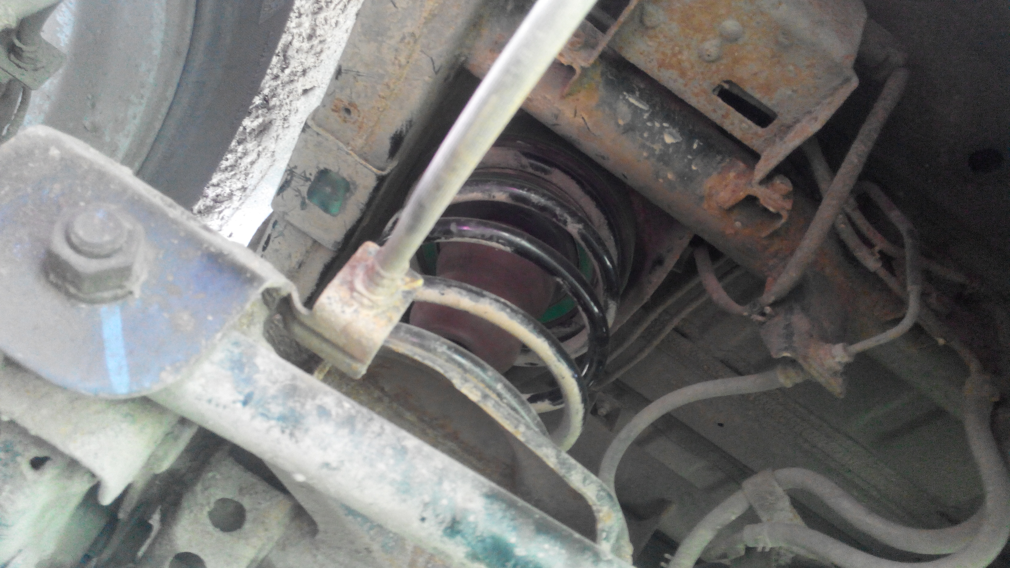 Все выщло, как и хотел... Проставки под шаровые не нужны- "язык" между отбойниками рычагов. Сзади особенно париться не пришлось- даже стойки стабидизатора не откручивал- только аморты внизу и сам стабилизатор с одной стороны. А подвеску раздвигал,