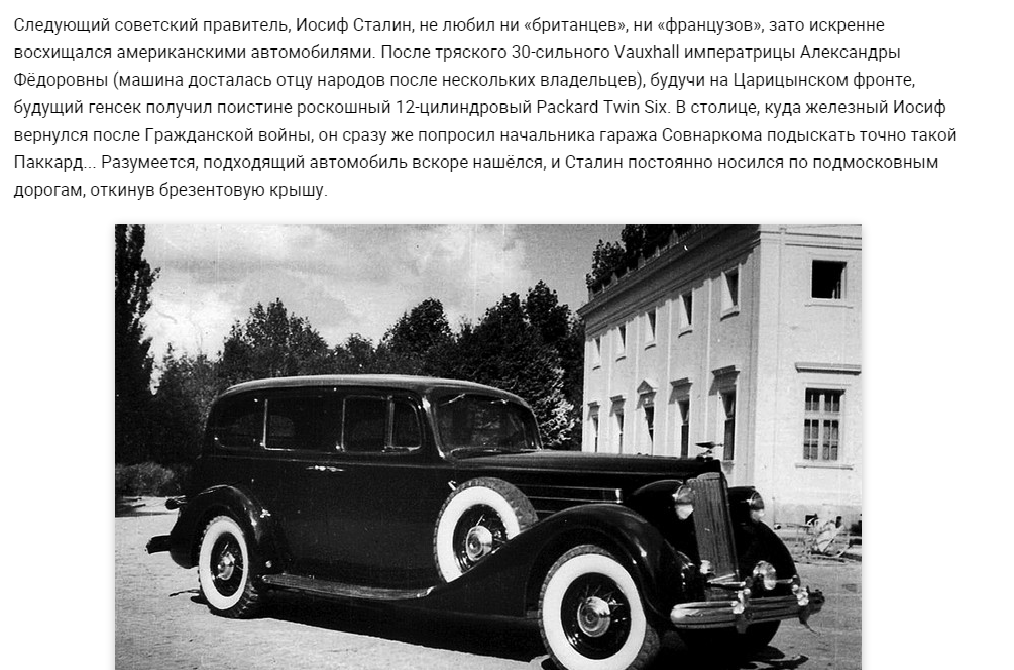 Что касается Андрюши..., так его предшественник И.С. любил американцев, а именно Packard Twin Six.
