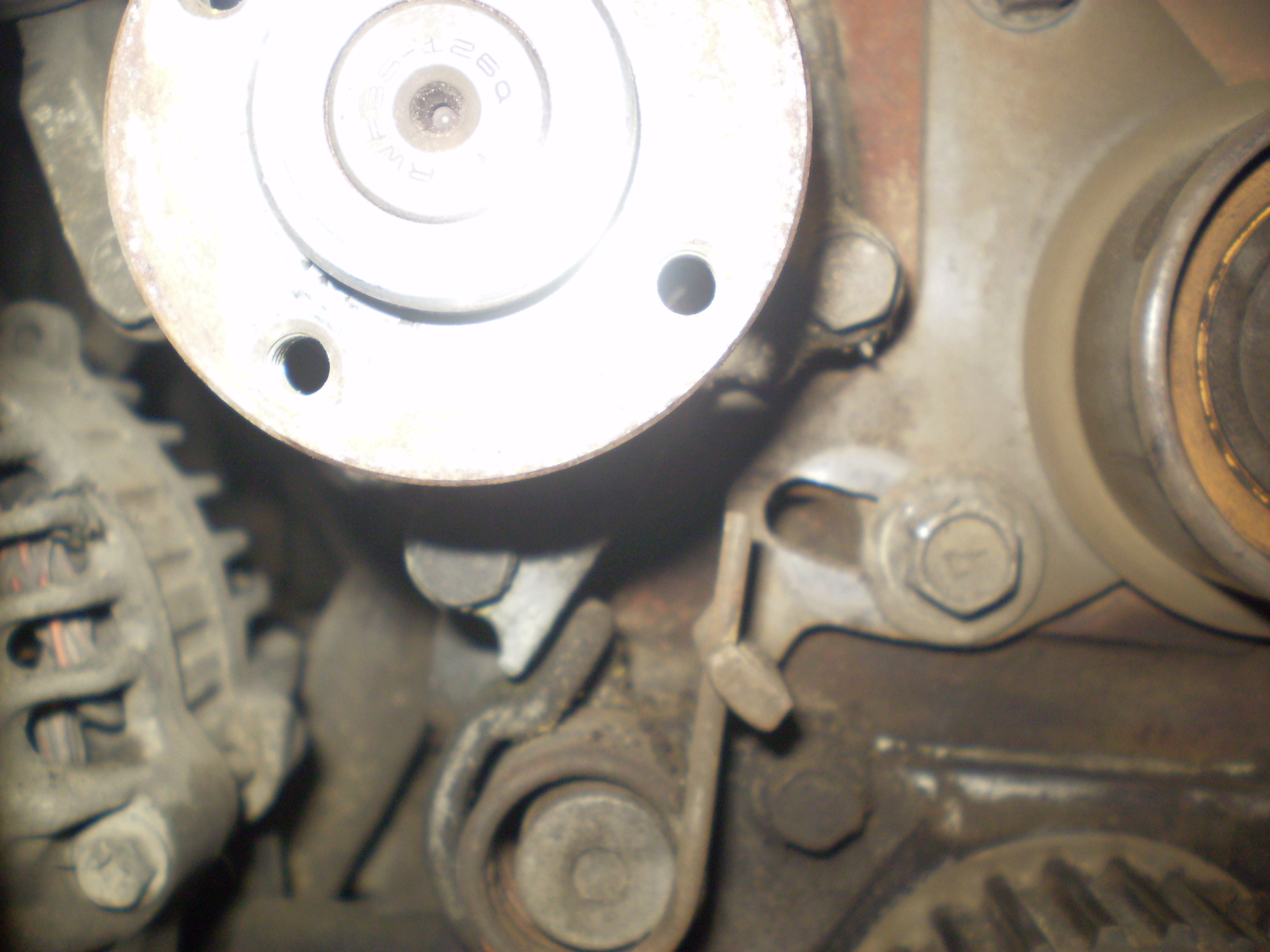 Меняя помпу - пришлось откручивать шкив коленвала. Откручивали стартером, накинув головку и вороток, упераяя это всё в пол. Но вот при закручивании, оказалось, что две половины шкива при определённом усилии прокручиваються между собой со скрипом.Следовательно болт может быть затянут плохо. При закручивании использовали подобную приспособу как на картинке "Aurumа" выше.