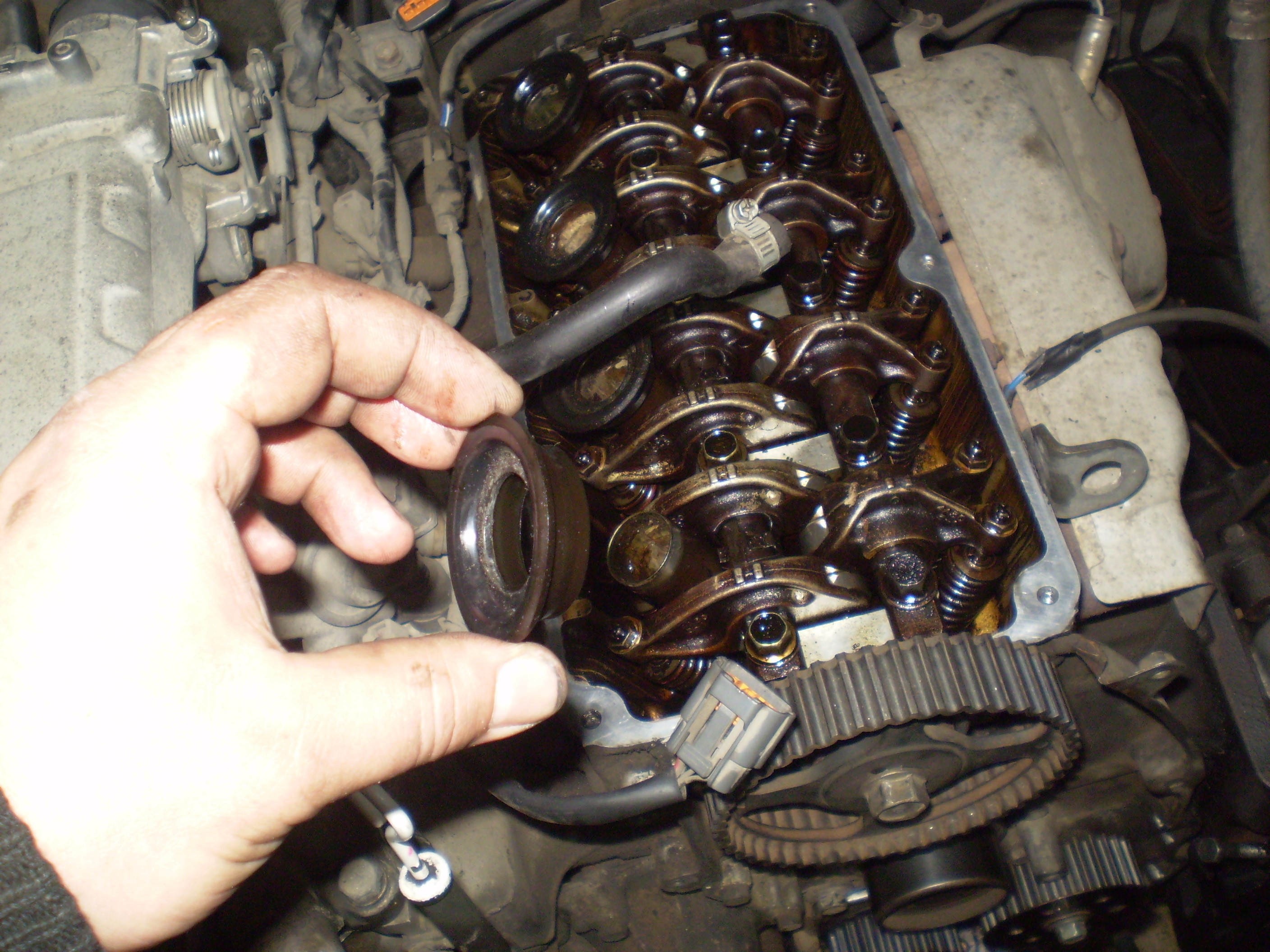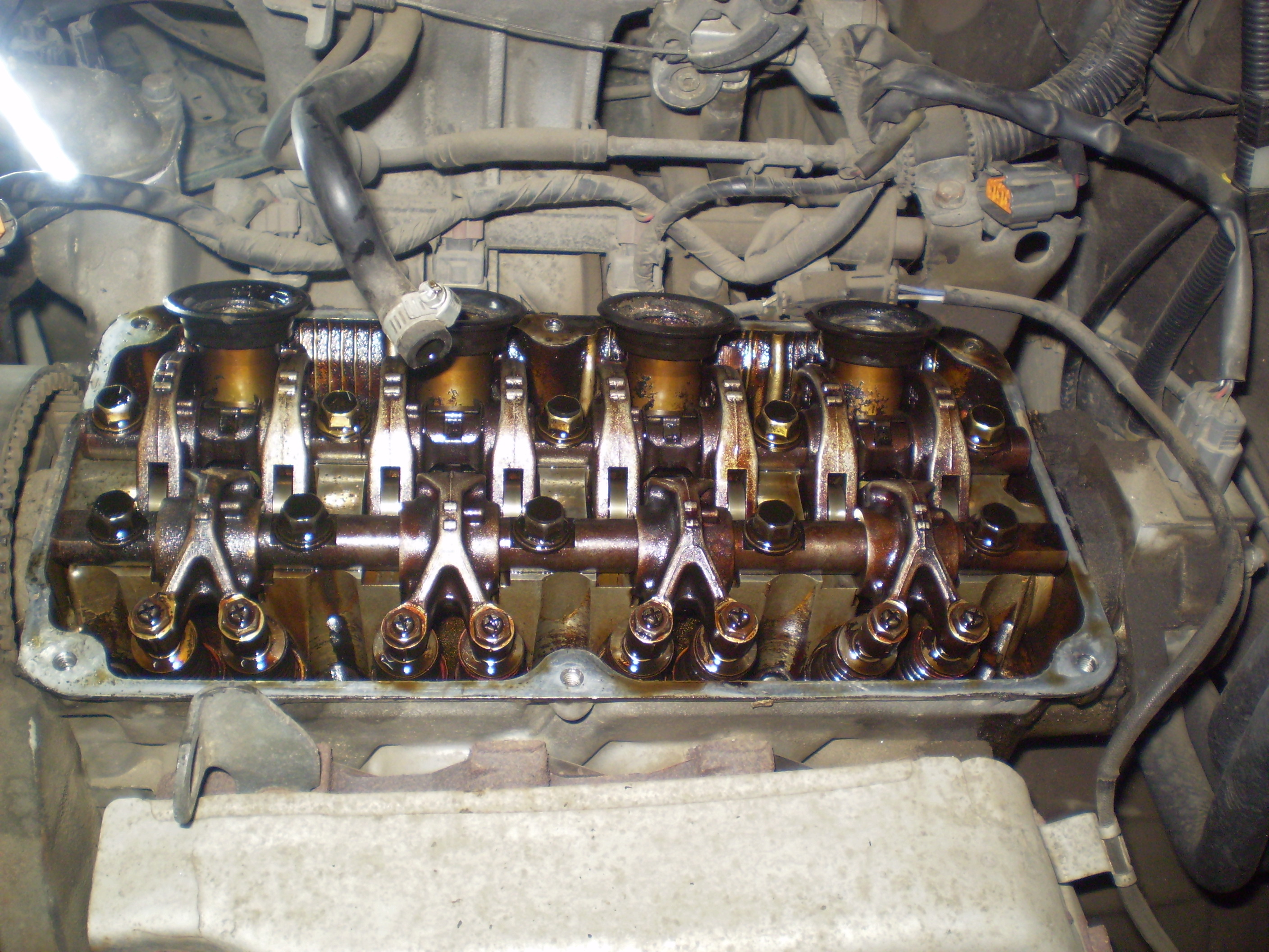 Тут решили клапана отрегулировать. Я как раз гарад приобоел недавно. Загнали, открыл я опять крышку ГРМ и УЖАСНУЛСЯ.