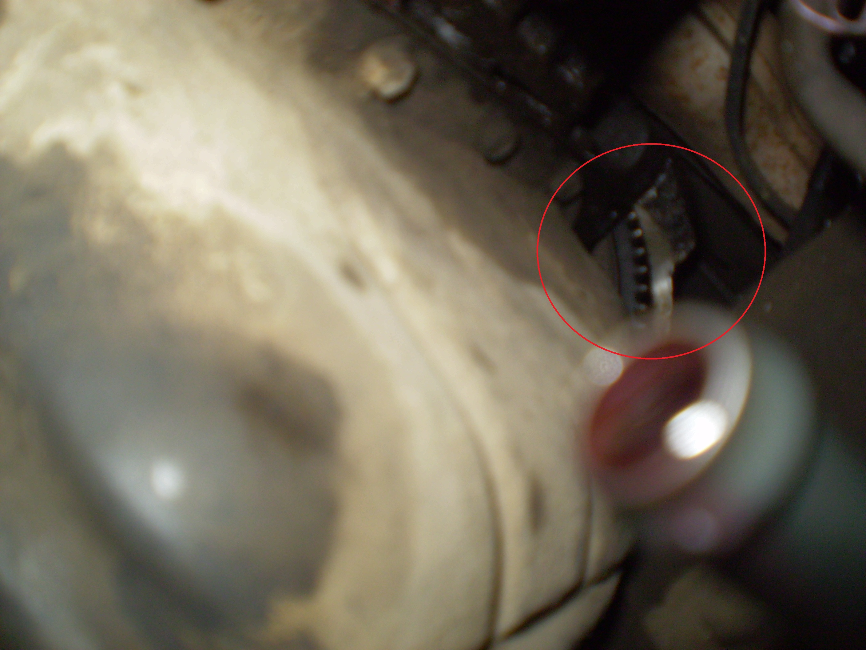 нехитрое приспособление из старого ремня и палки - оказалось вполне эффективно (на месте было не сфотать, там темно и тесно).