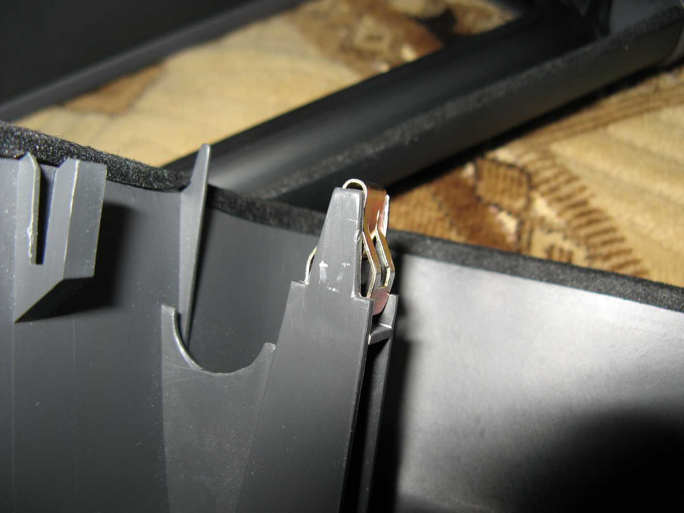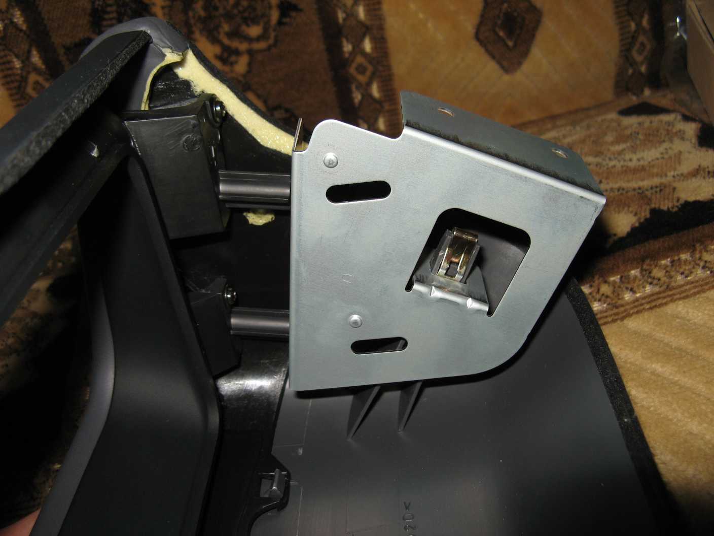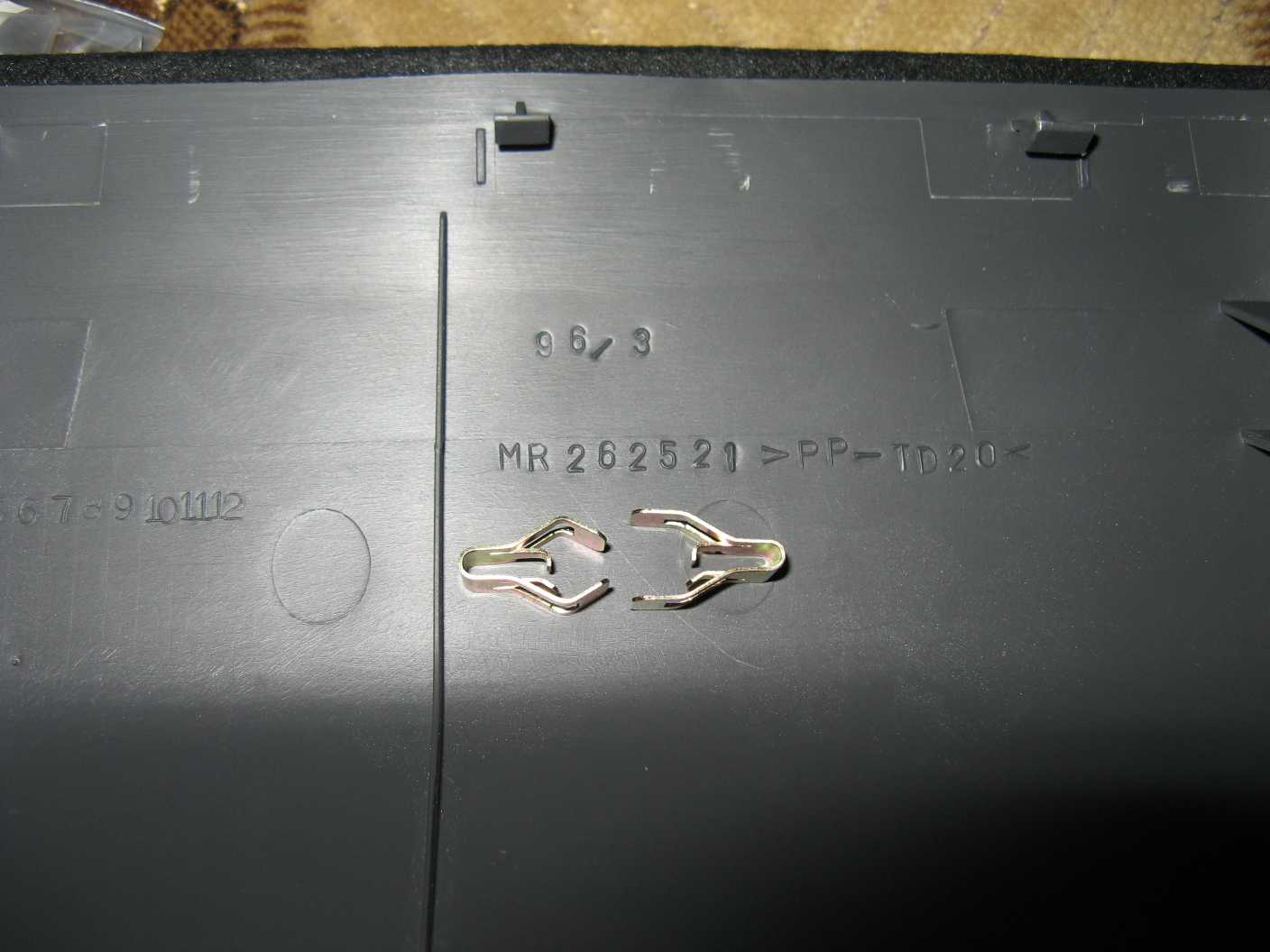 Фотки. Защелки очень жестокие, и металлические и пластмассовые, поэтому одни выпрямил, вторые подрезал. Теперь можно снимать заднюю часть без риска что-нибудь сломать, при этом держится весьма туго. Саморезы тоже купил оригинал, во избежание. Лоханулся - нужно было купить и нижний кронштейн (MR262522), не думал, что он отличается от обычного, пришлось колхозить, фотки колхоза чуть позже. Передняя часть из мягкого пластика, задняя из жесткого. Цвет немного отличается, хотя заказывал у одного поставщика и все детали пришли в один день.