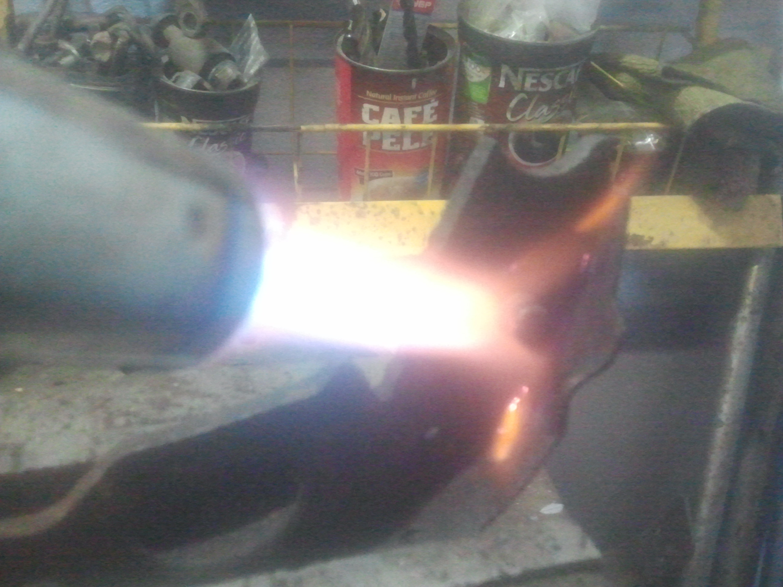 Затем берем дрель и сверло под клепки 4-ку сверлим отверстия в метале через отверстия в накладках,а вот последнюю пару наоборот и снимаем фазку сверлом на 10 (делаем патай)