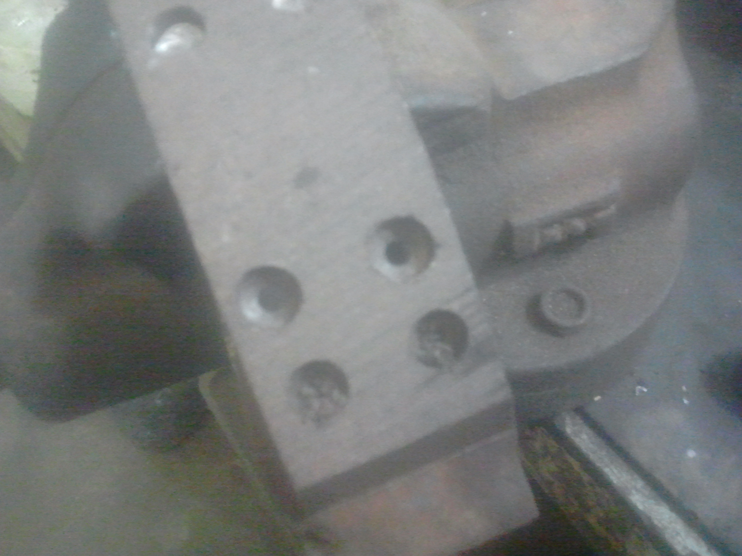 Приставляем колодку к двум крайнем отверстиям от точки срабатывания механизма(не знаю как по другому объяснить)....выравниваем и сразу их клепаем...(как клепать решайте сами я вот делаю как на фото)