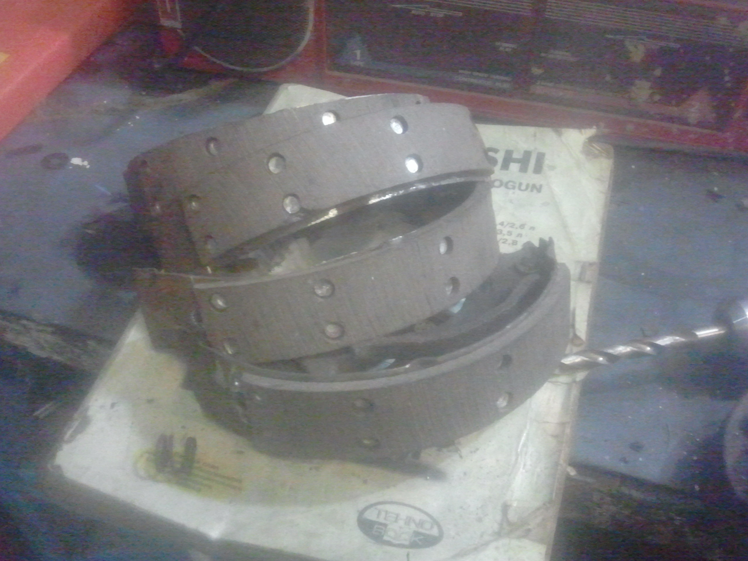 Едем в магазин и покупаем колодки ручника от УАЗ Хантер или 469 без разницы .....у УАЗов ручник находится на карданном валу возле раздаточной коробке и состоит из двух колодок и по этому мы покупаем два комплекта и клепки(клепки подходят от накладок на тормозные колодки колеса и продаются на два колеса)....