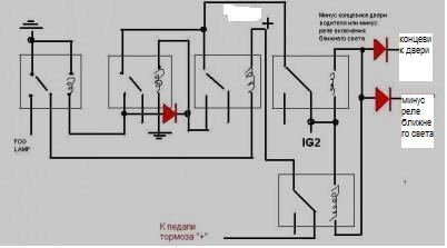 Для противотуманок была прекрасная схема. Автор размещал на этом ресурсе. Ссылку не нашел но схема сохранилась. Себе так делал на форд.