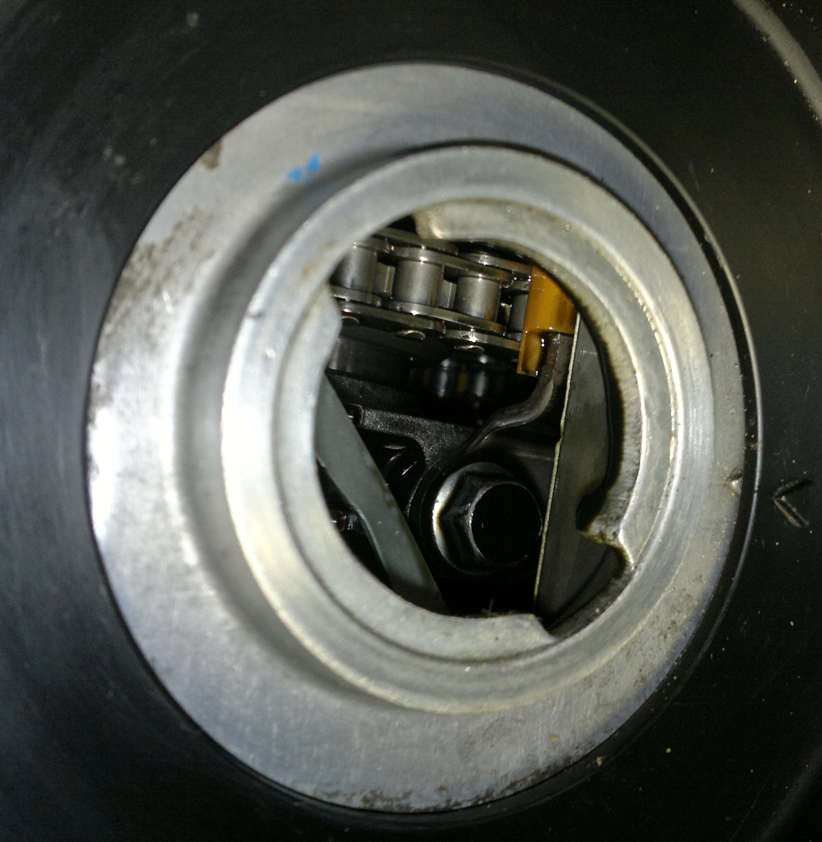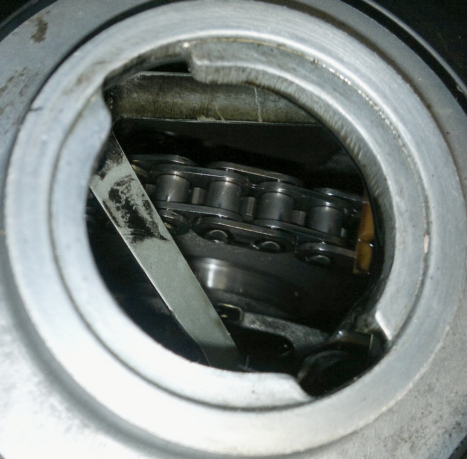 Цепь через горловину не проверить.Успокоитель можно увидеть что он есть да.О его состоянии без снятия клапанной крышки тоже не узнаешь.Цепь у нашего коллеги оборвало исключительно из-за хренового успокоителя это факт.Вывод только один.ВСКРОЙ КЛАПАННУЮ КРЫШКУ И ВСЁ УВИДИШЬ,без вариантов.Про сам успокоитель вроде как на Тройках был дохлый,потом стали ставить измененный,более прочный.Где то у нас на форуме я читал,или еще где то.