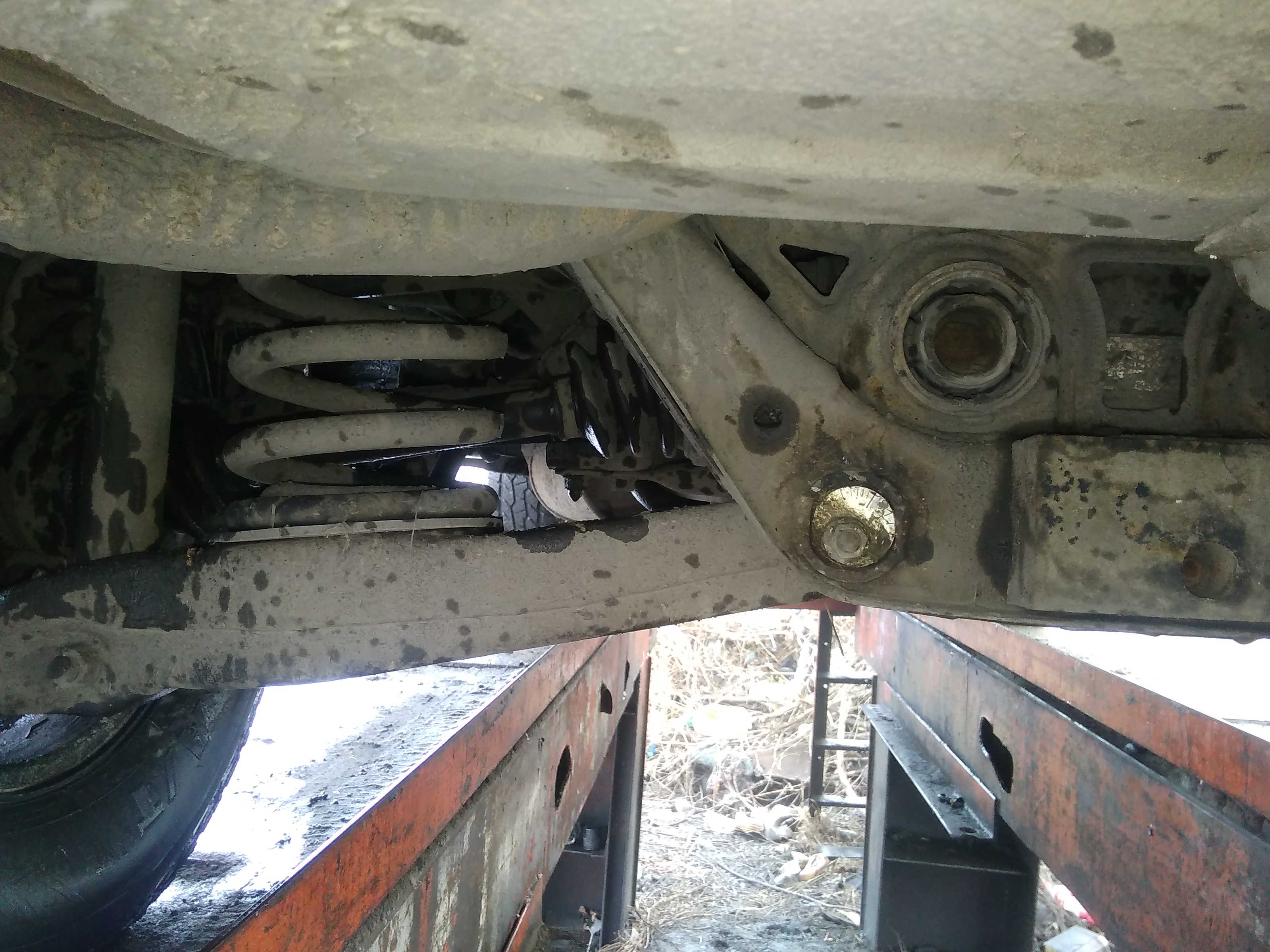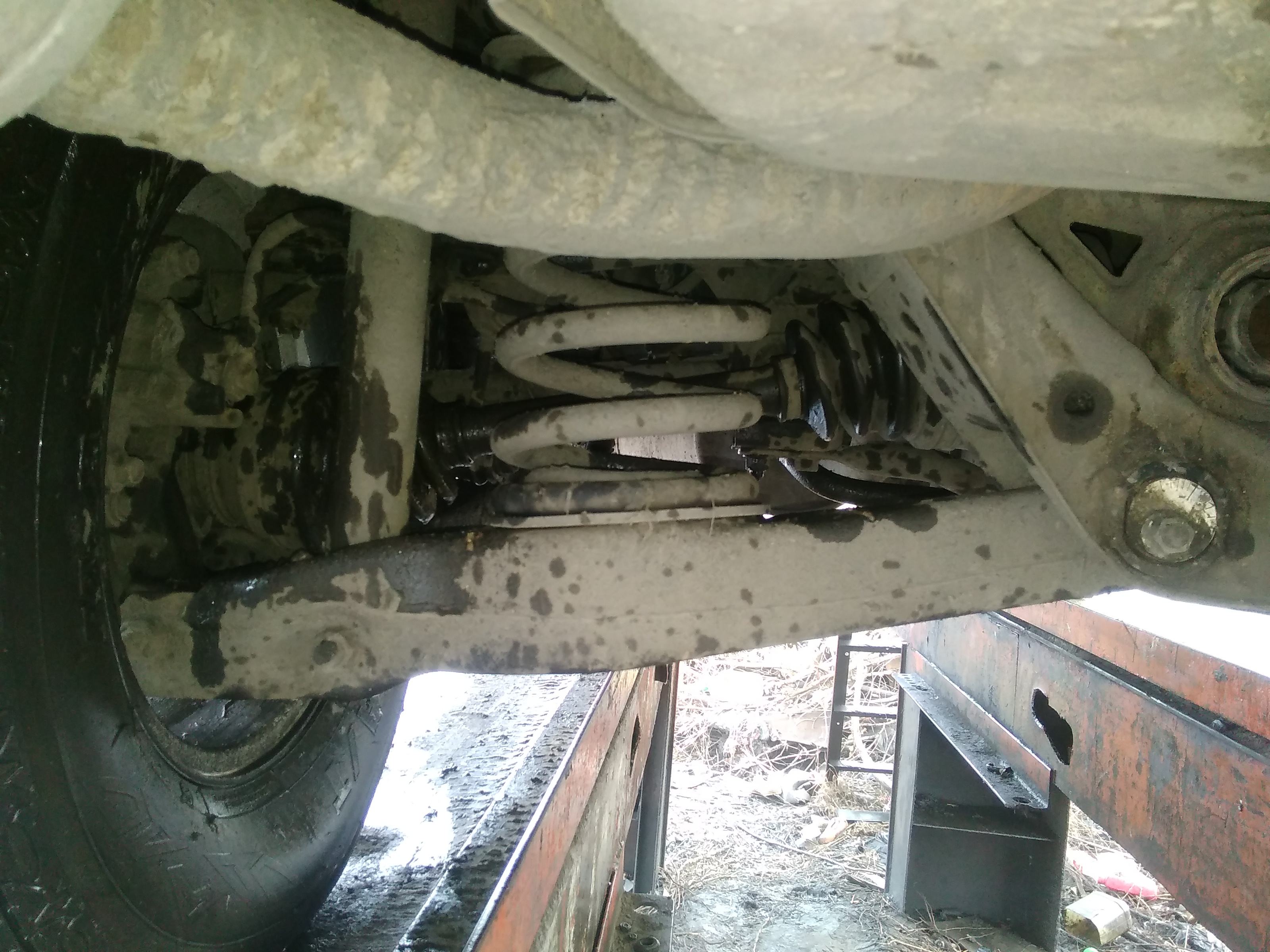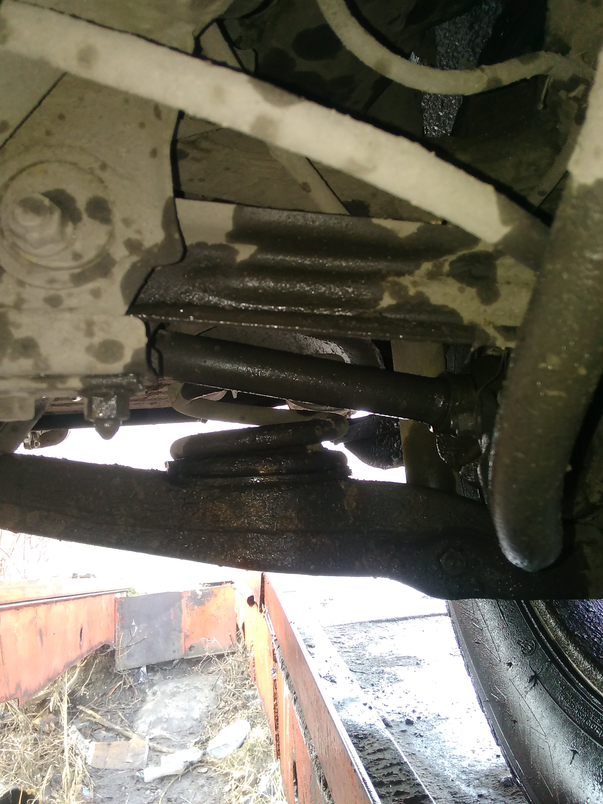 Фото угла наклона заднего привода , фотографировал на эстакаде. Дорога на эстакаду через лужи, таит снег , так что ходовка вся мокрая .