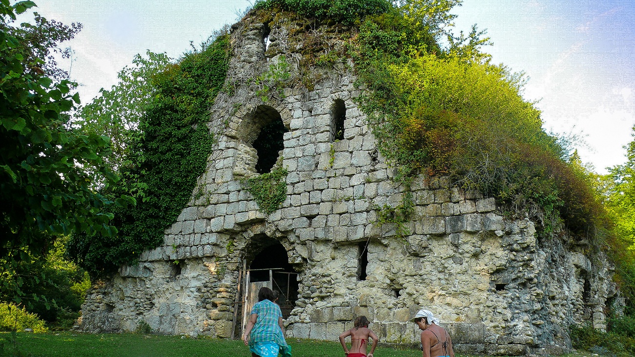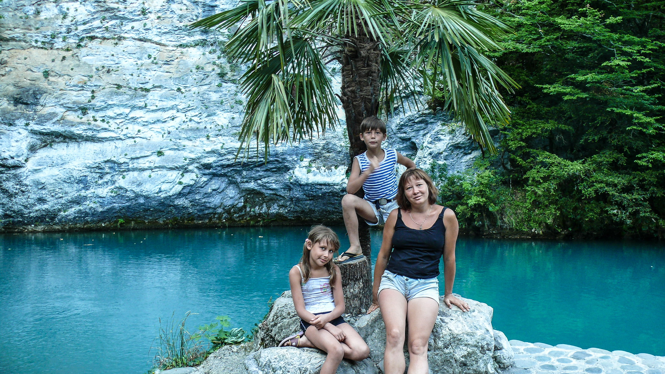 обосрали. Дойдя до беседки устроили привал. Ребята полезли купаться в горной реке,