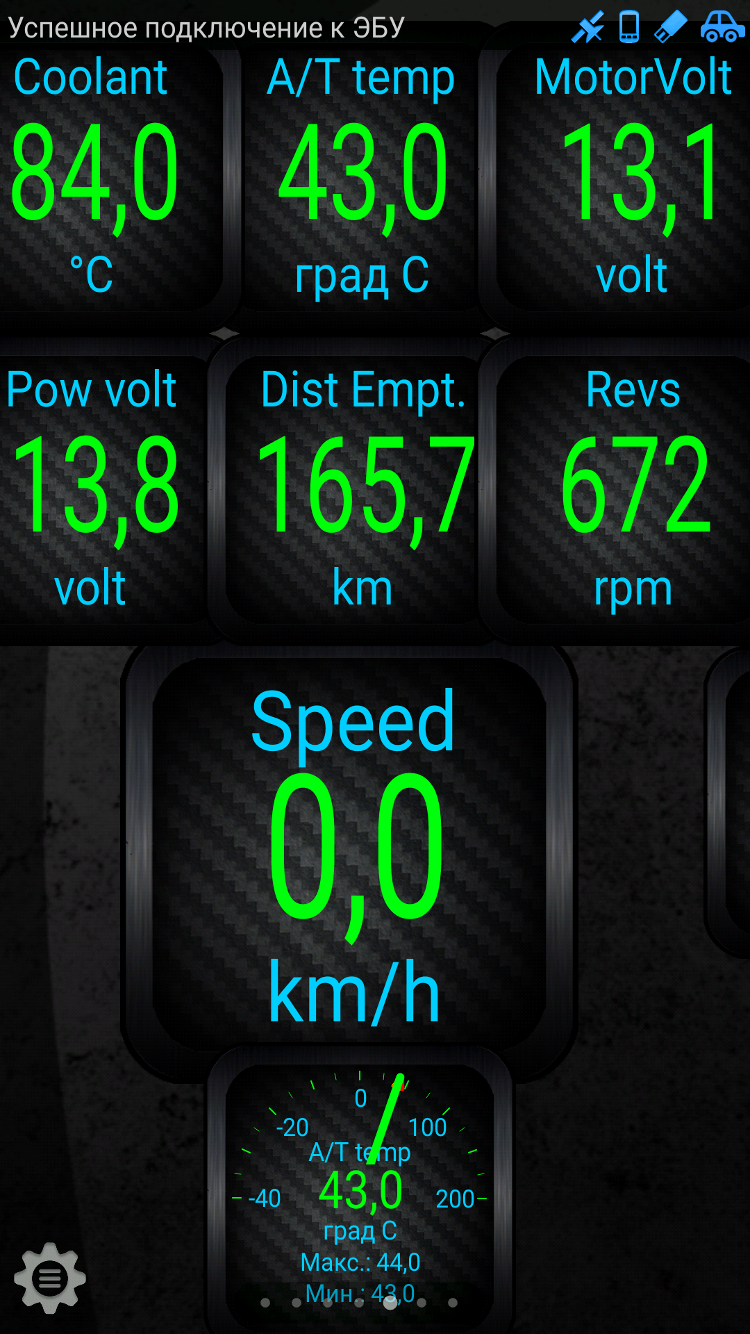 Программа Torque выдает такие напряжения.