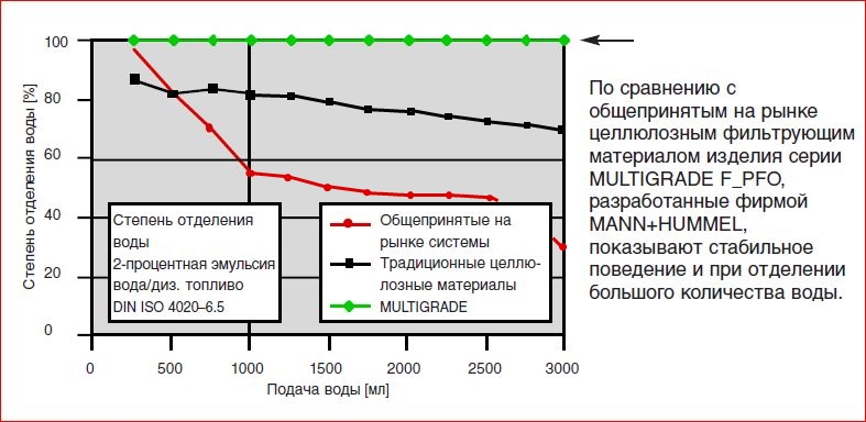 В принципе не способны пропускать воду только современные штатные т/фильтры, точно называемые сепараторы воды и твердых частиц по DIN ISO 4020-6.5 (уже есть действующий ISO для вечного отделения 4% эмульсии воды)