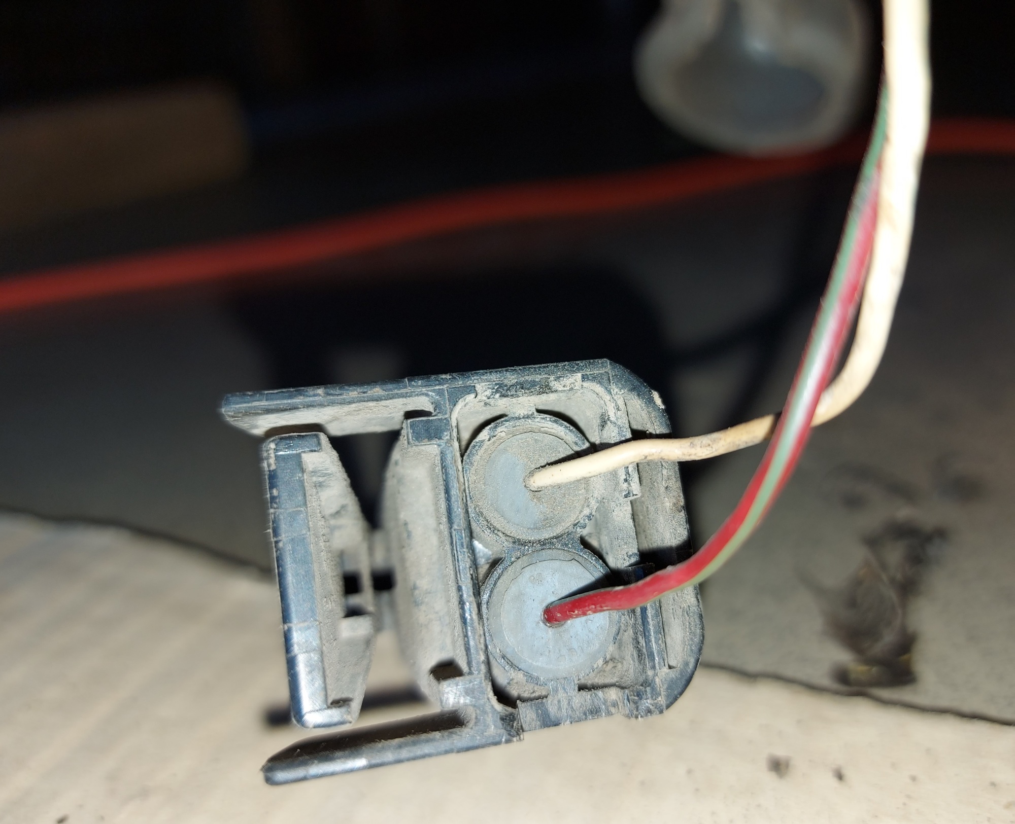 Протащил новый провод (взял кусок от какой-то многожильной ВВГшки на 0.75 квадрата с толстой изоляцией). И прицепил прямо на + аккумулятора через предохранитель 2А (ну мало ли... провод же болтается сам по себе пока, только привязан где смог изолентой к разным косицам).